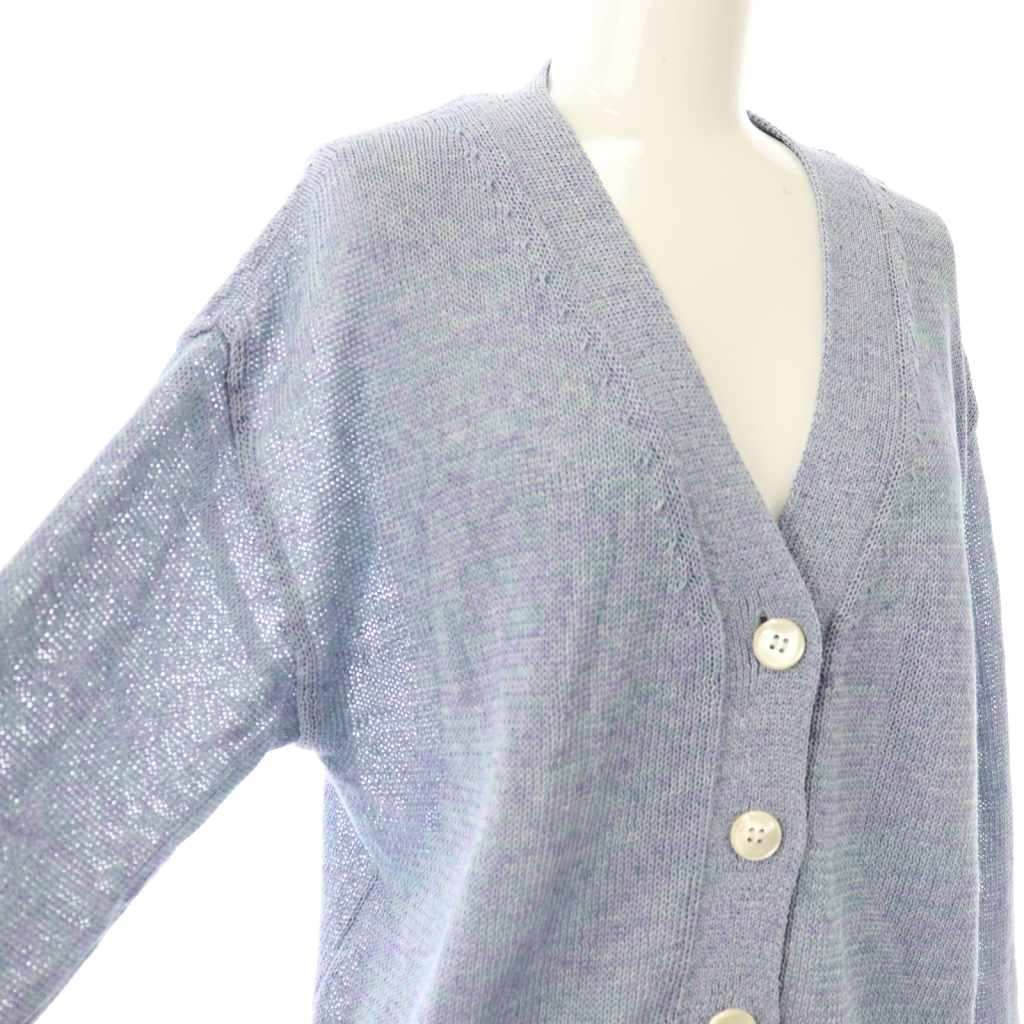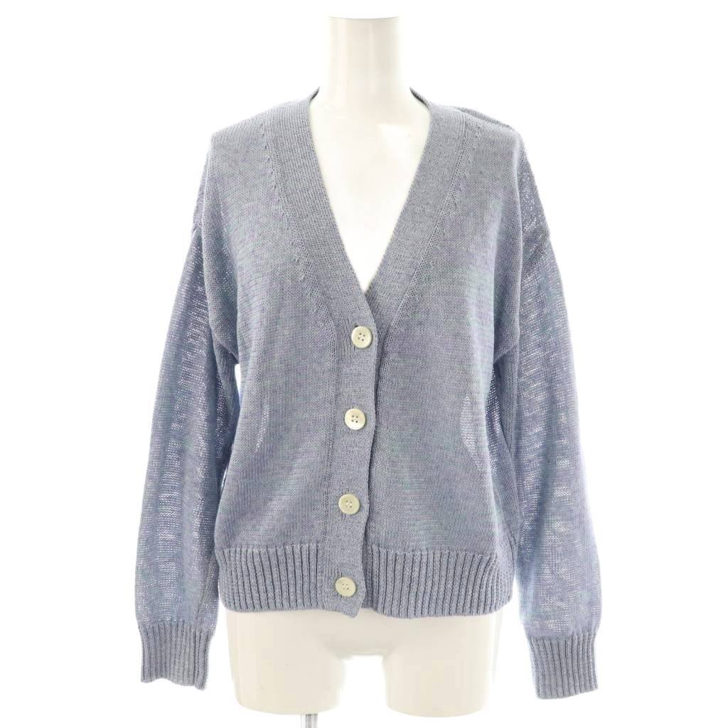 マカフィー MACPHEE トゥモローランド ポリエステルリネン ショートVネックカーディガン ニット S スモークブルー ミント /ES ■OS レディース