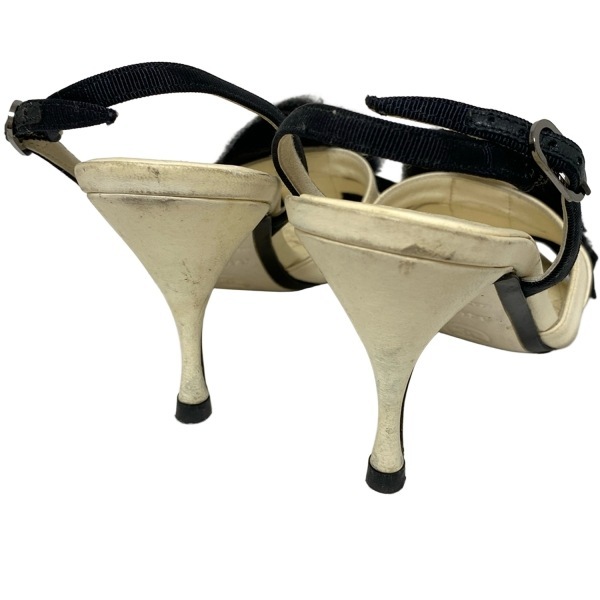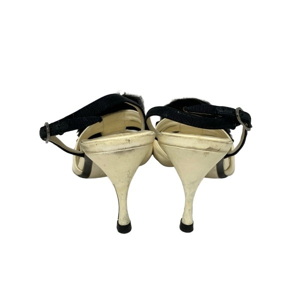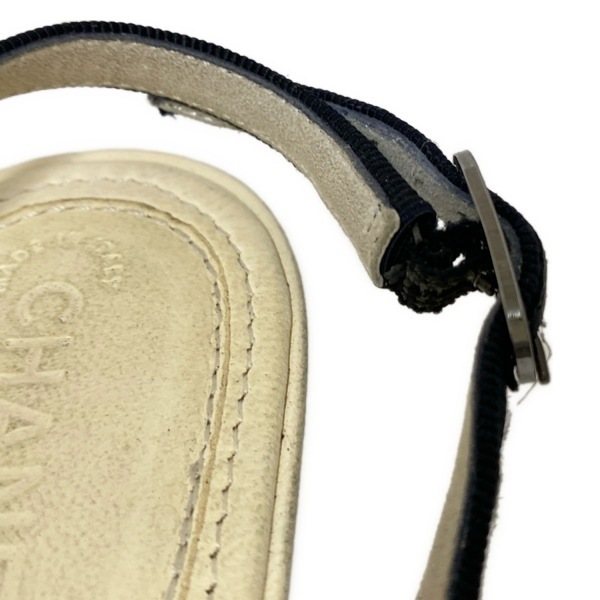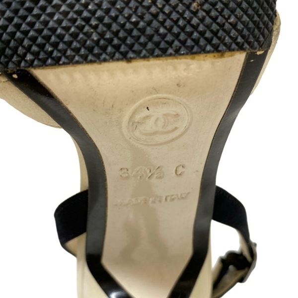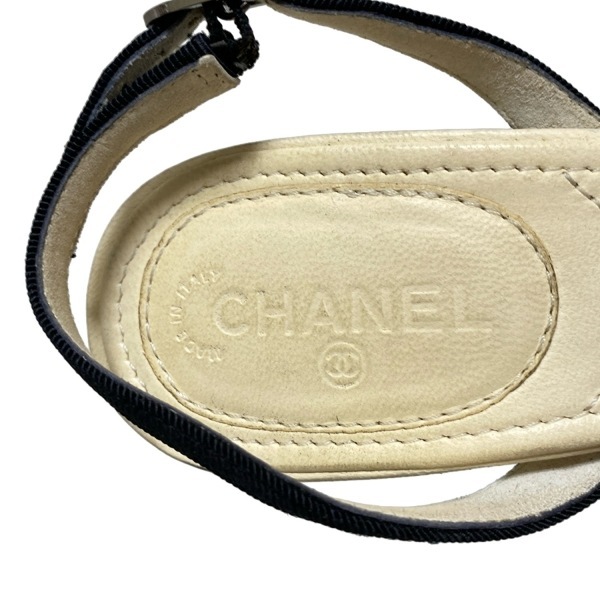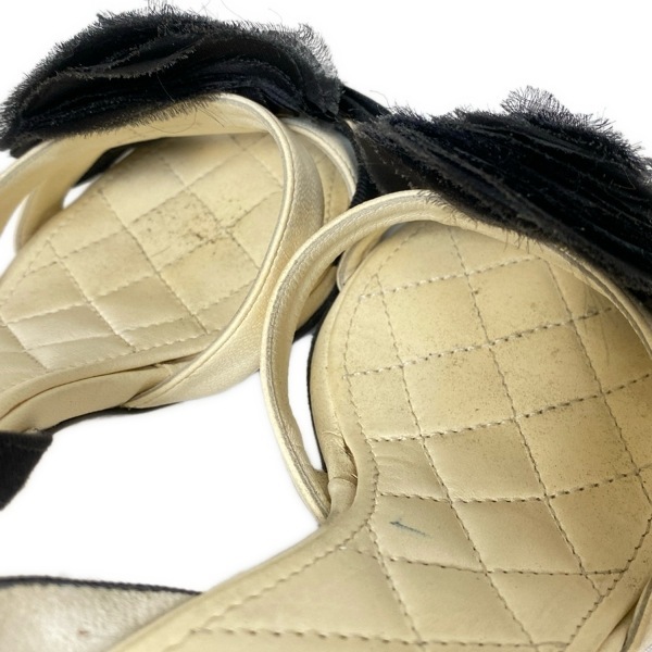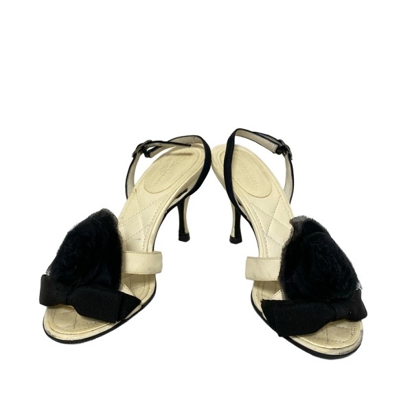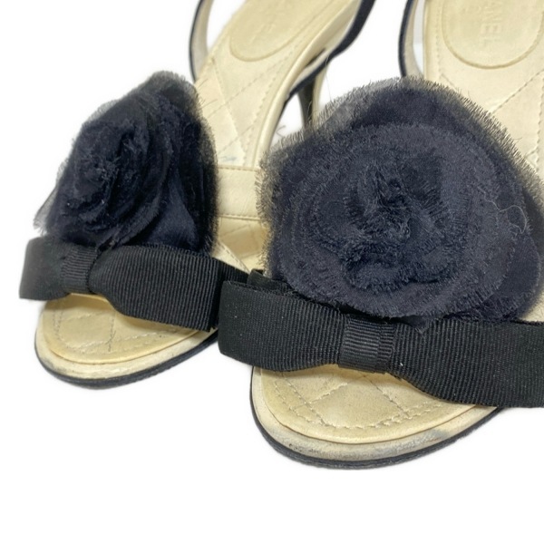 シャネル CHANEL サンダル 34 1/2C - レザー アイボリー×黒 レディース フラワー(花)/リボン/アウトソール張替済 靴