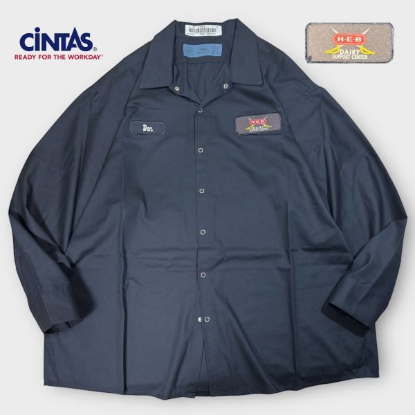 ★美品★BIGサイズ★HEBロゴワッペン★CINTAS 長袖ワークシャツ size2XL スナップボタン アメリカ 古着 クリーニング プレス済み 2467