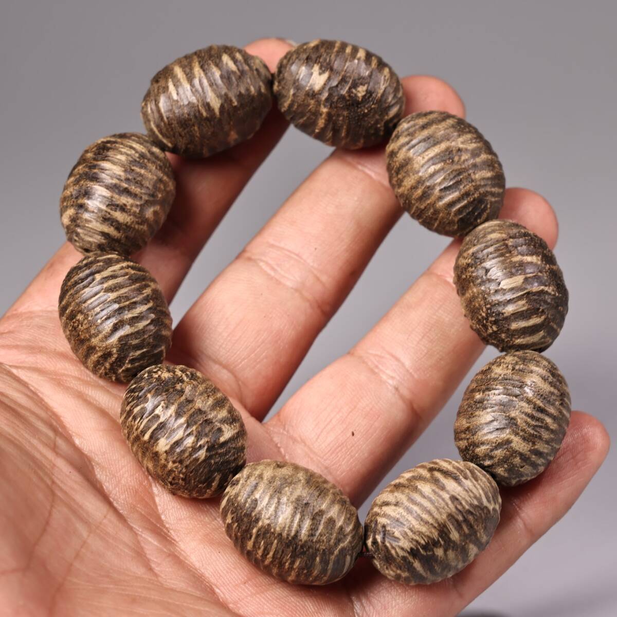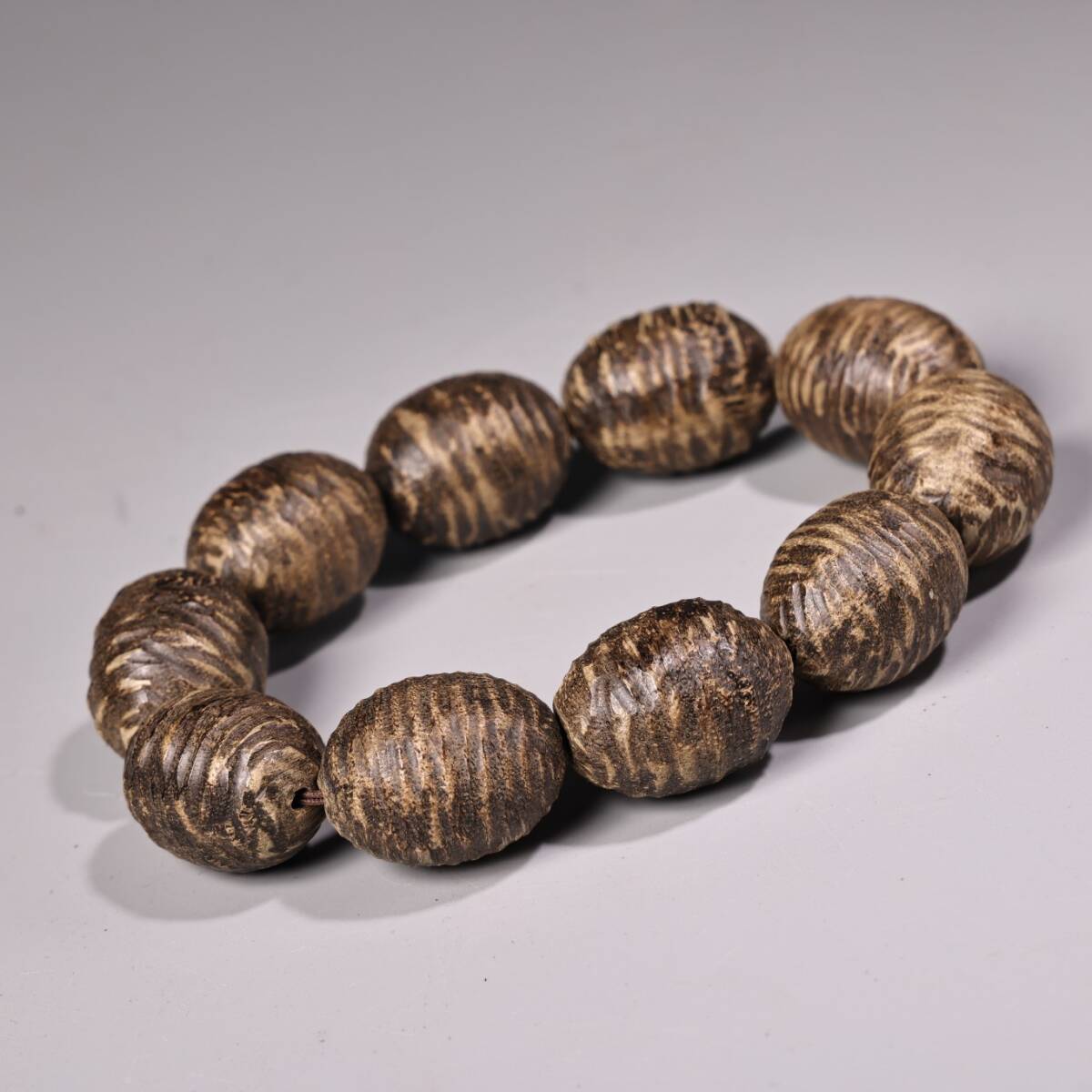 清 乾清宮藏 古沈香彫 沈香 香木 手鏈 腕輪 数珠 念珠 箱付 置物 時代物 古董品 骨董 旧家蔵出し 唐物 中国古玩 古美術品