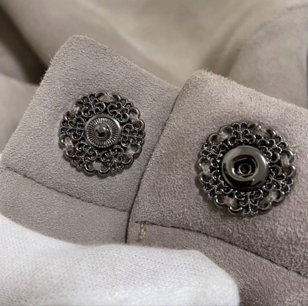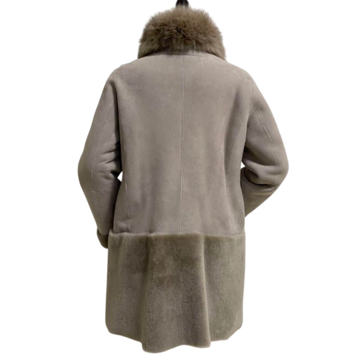 襟周り豪華なブルーフォックスファーはワンボタン式で取り外し可2WAY。内側に丸めて首周りを保温。毛皮のボリュームで小顔効果も。造り込まれたエレガントなスナップボタンも魅力。カラーはグレージュ系。国内正規品。ノーベント。フロントはスナップボタン開閉。両サイドにオープンポケット。袖はダブル折り返しorストレート。