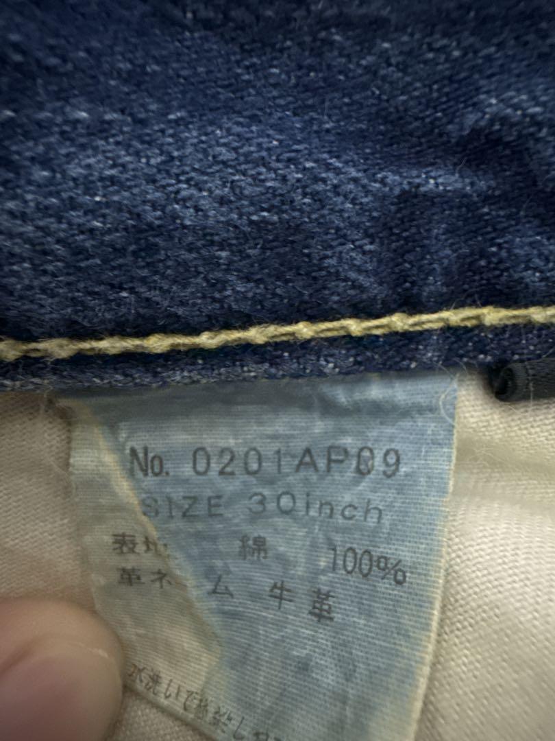 ボタンフライ仕様、レザーパッチ&ポケットスレキにブランドロゴ入り。