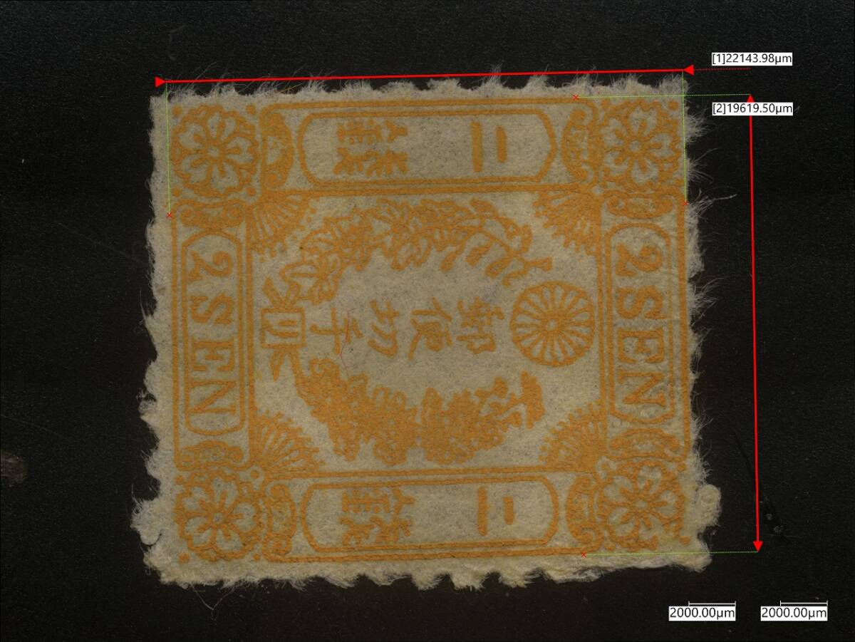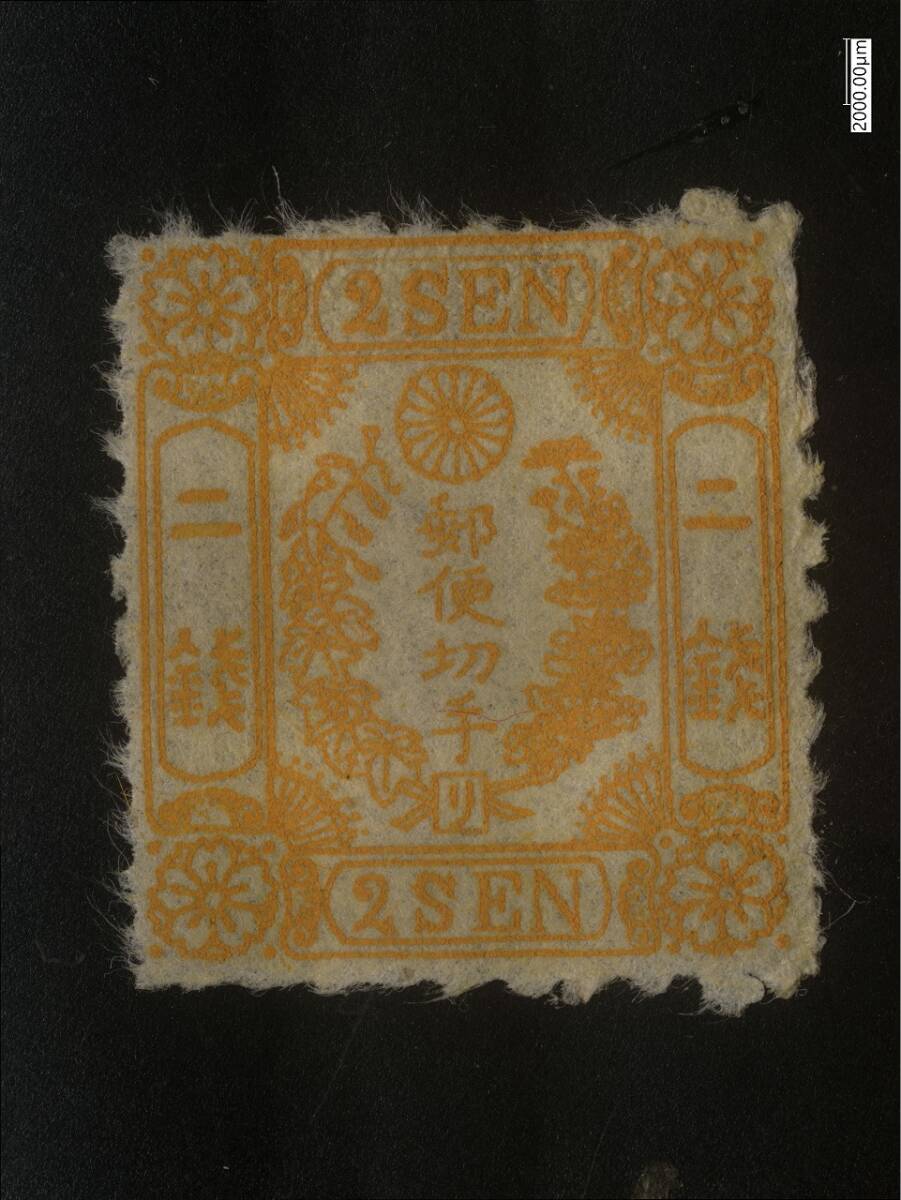 多くの手彫切手が 洗浄漂白されているが、本品はそうした漂白を受けていないナチュラルな個体です