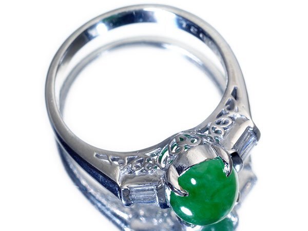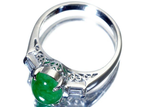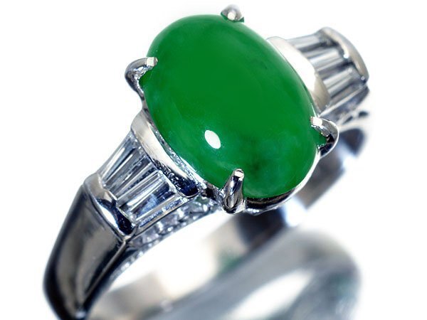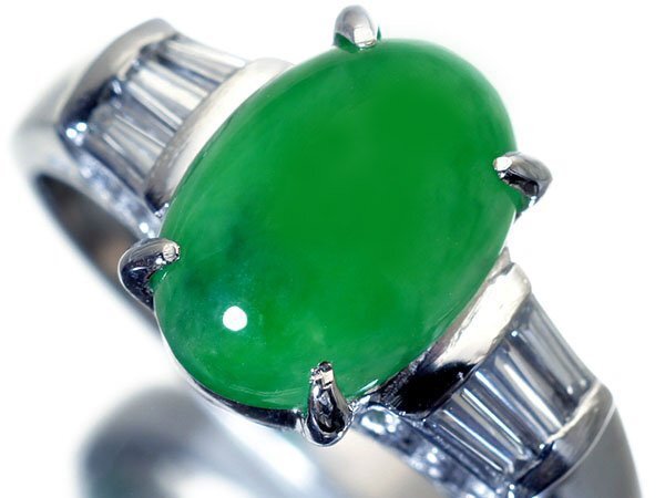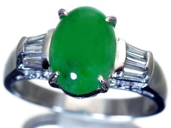 樹脂含侵無し保証!超希少な大粒良質天然翡翠2.46ct&良質ダイヤモンド総計0.21ctを素敵に宝飾した、高級Pt900リングを激安価格で特別大放出致します!