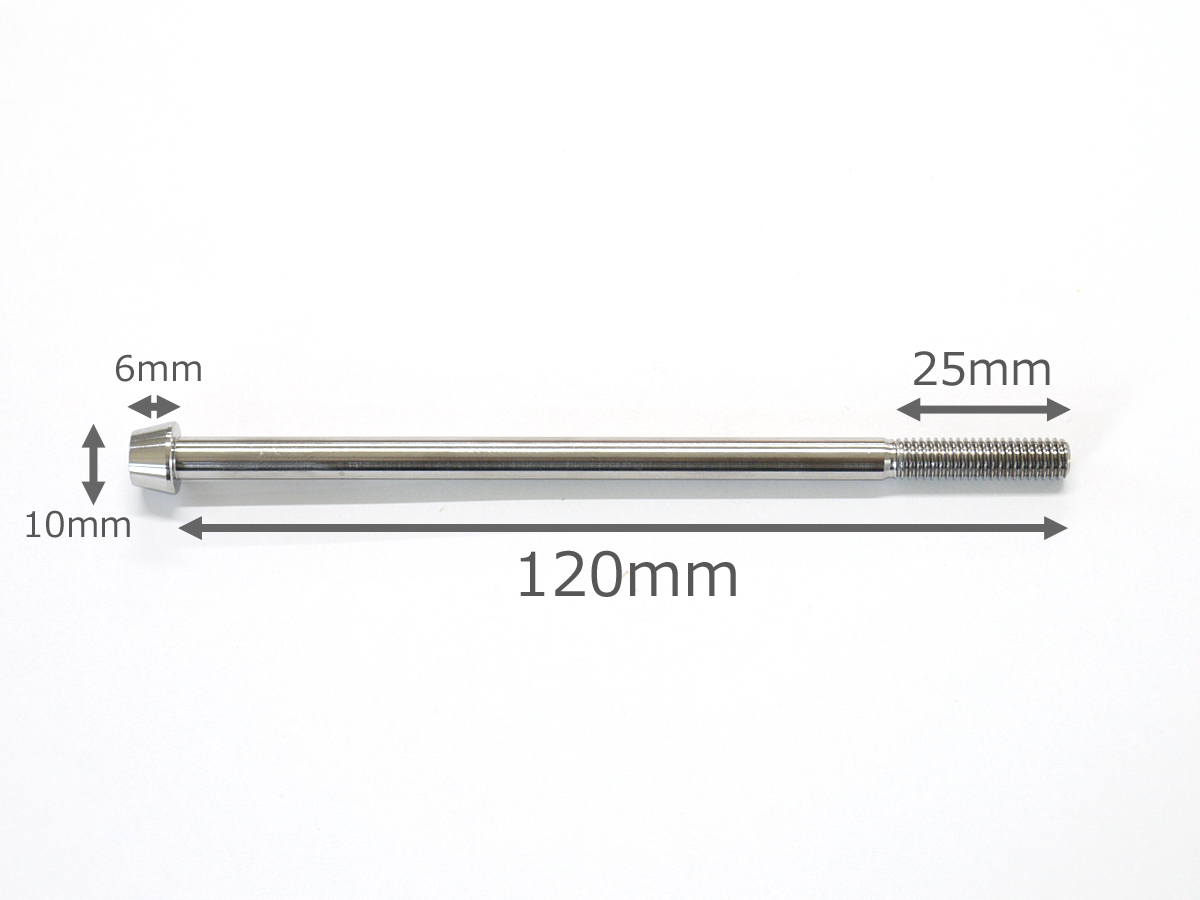 64チタン合金ボルト M6×120mm P1.0 1本 テーパーキャップ ゆうパケット対応 焼き色なし Ti-6Al-4V