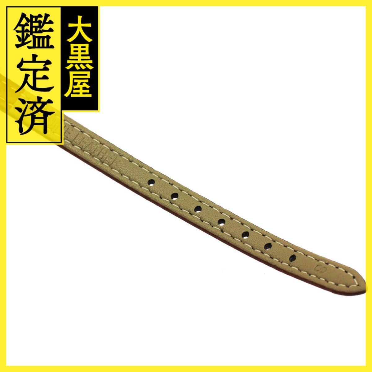 詳細 | 【商品番号】 2181000003289 【付属品】 弊社オリジナル箱 【サイズ】 ケース径:約18.0mm 腕周り:最大約16cm 【保証】 現状販売の為、弊社保証対象外となります。 修理が必要となった際の費用は、全てお客様負担となります。 予め御了承下さい。 【修理履歴】 弊社にて修理履歴は御座いません。 【状態】 《風防》 肉眼で確認できるダメージは見受けられません。 《文字盤》 肉眼で確認できるダメージは見受けられません。 《ベゼル》 肉眼で確認できるダメージは見受けられません。 《ケース》 ケース表面に少し打痕小傷が御座います。 《ラグ》 肉眼で確認できるダメージは見受けられません。 《裏蓋》 裏蓋表面に少し薄い傷が御座います。 《ブレスレット》 社外製革ベルト表面と裏面に少し皺が御座います。 《バックル》 バックル表面と裏面に多少小傷と開け閉め痕跡が御座います。 【注意】 各出品サイトによって掲載される写真の枚数制限が御座いますので、詳しい状態についてご気軽にお問い合わせください。 此方の商品は店頭展示商品の為、ネット掲載状態から変わる場合が御座います。ご注文後、店舗から状態確認についてご連絡する場合が御座います。詳細に関して、お気軽にお問い合わせ下さいませ。 細心の注意を払って御取扱い致しておりますが、「中古品」の為、商品確保時に、動作不良やキズ等の不備により、弊社より確保保留の御案内及び、キャンセルとさせて頂く場合が御座います。 ご理解の上ご購入頂きますようお願い致します。 ~・~・~・~・~・~・~・~・~・~・~・~・ 海外のお客様へ 基本情報内の「年」は保証書に記載されている購入年を指しています。 販売価格に輸入税、関税、消費税、配送料、送金手数料等は含まれておりません。 全て別途でお客様負担となります。予め御理解頂いた上で、御注文をお願い致します。 配送はDHLにて発送しております。配送業者の指定は承りかねます。 購入後の商品は安全かつ迅速にお届けします。 注意 1 表示価格は税抜価格(免税価格)です。 発送時に低い金額で申告して発送する事はできません。そのような質問はお辞めください。 輸入税は表示価格に含まれていません、すべての支払われる税は買い手の責任です。 2 わに革及びトカゲ革等のエキゾチックレザーベルトはワシントン条約による輸出制限のため海外発送できません。 ベルトは除いての発送となります。 3 ホテルなどの宿泊先への発送は出来ません。 4 通関された貨物には、あらゆる税金が課されます。掛かる税金は全てお客様のご負担となります。予め御了承下さいませ。 理由を問わず、お客様が荷物を受取をされずに弊社へ戻ってきた場合、返送に掛かった配送料等は全てお客様に請求させて頂きます。 | ||