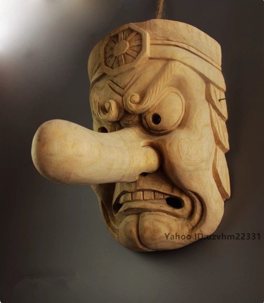 能面 手彫り 天狗面 伝統芸能 工芸品 コレクション 壁掛 置物
