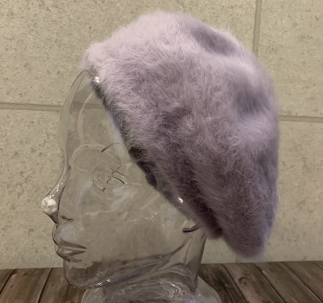 滑らかで柔らかい風合いが心地いいアンゴラ風ベレーです。