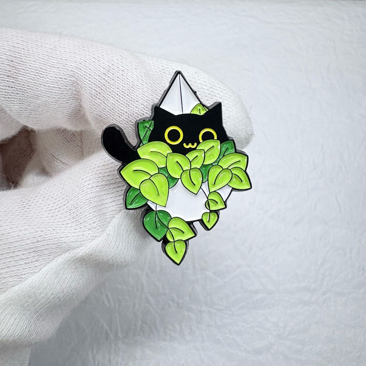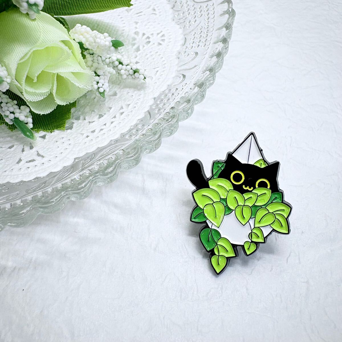 【ピンバッジ】黒猫 観葉植物 にゃんこ グリーン かわいい 癒し