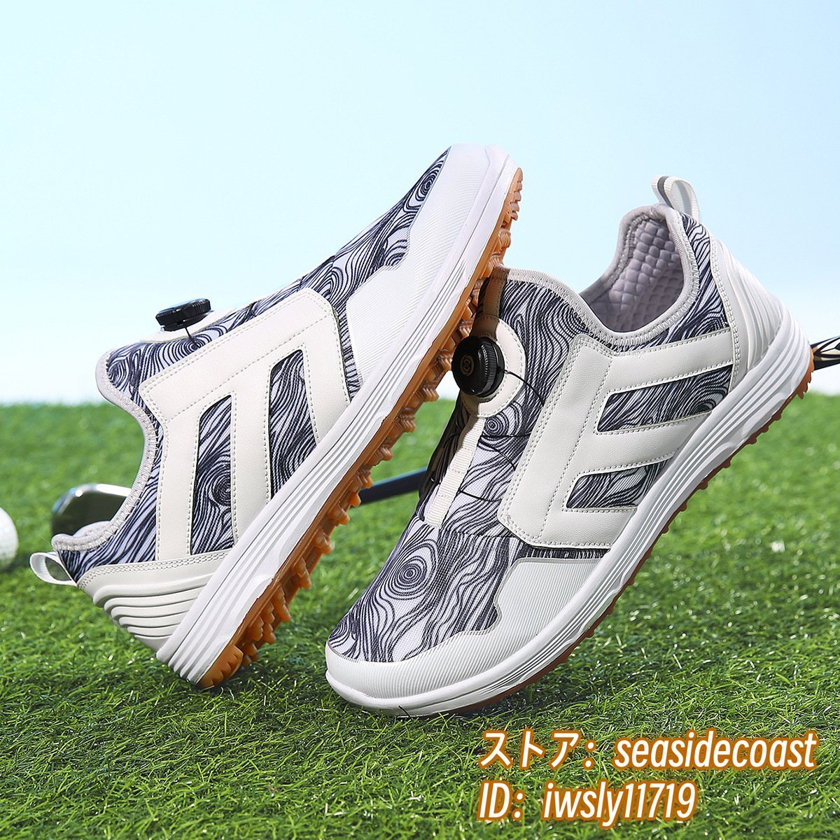 正規品 ゴルフシューズ 新品 レディース ダイヤル式 運動靴 幅広 フィット感 落書き 軽量 女性スポーツシューズ 防滑 耐磨 ホワイト 24.5cm