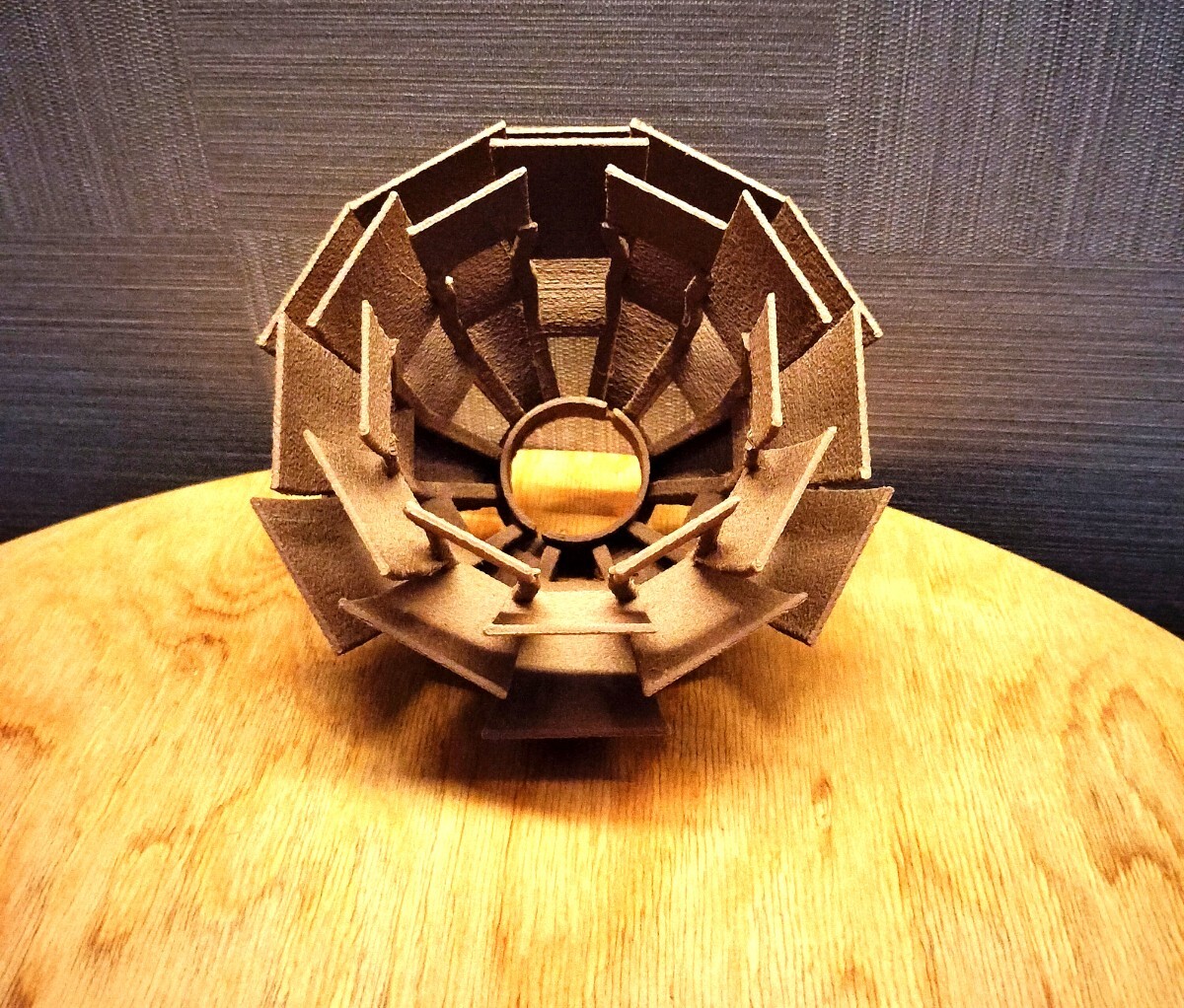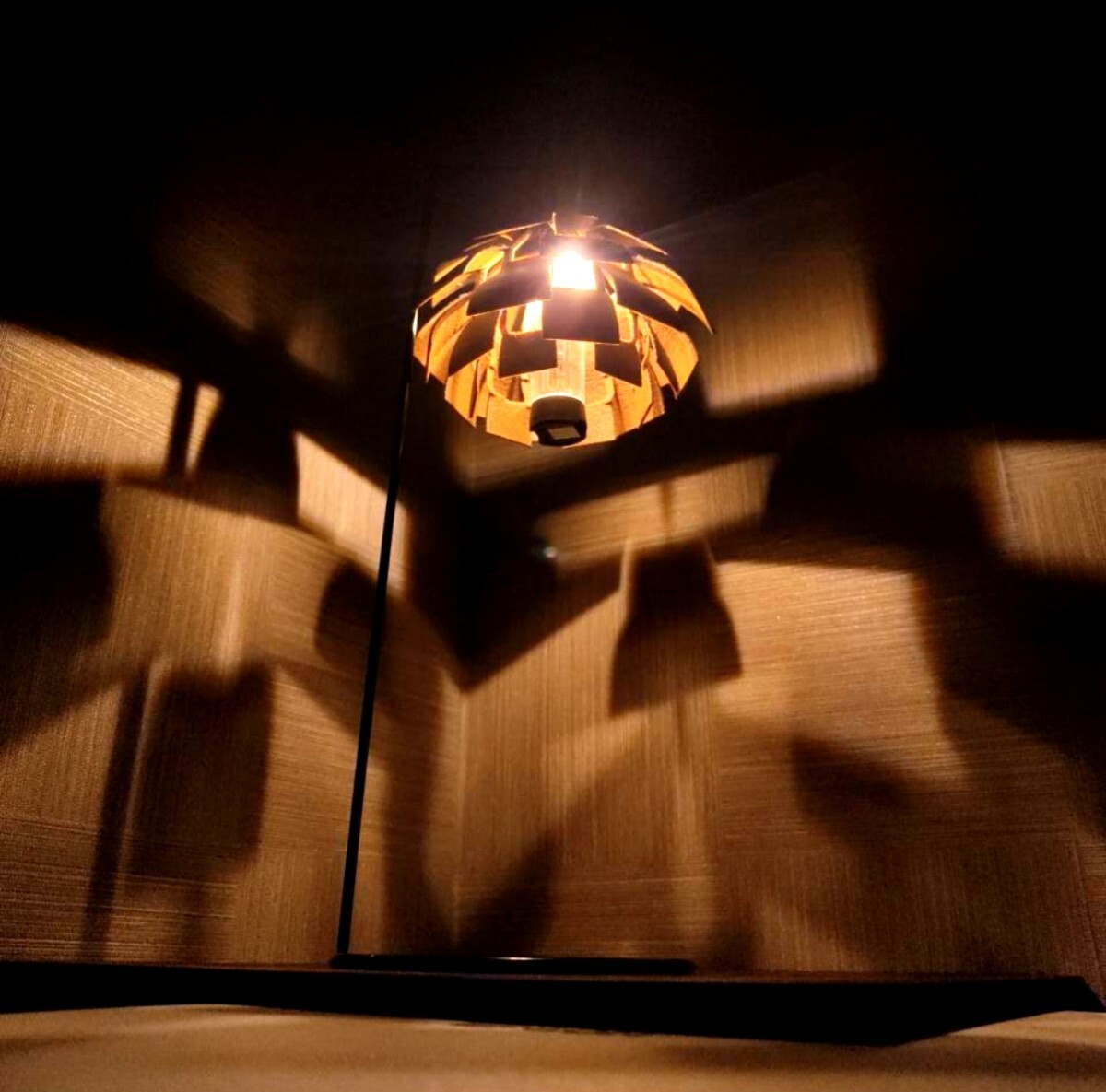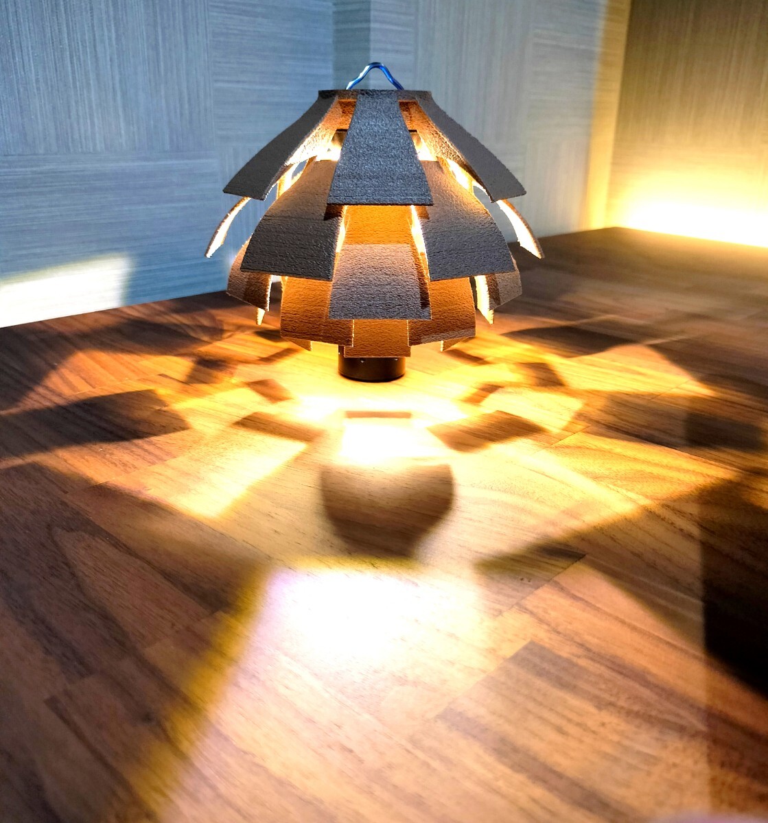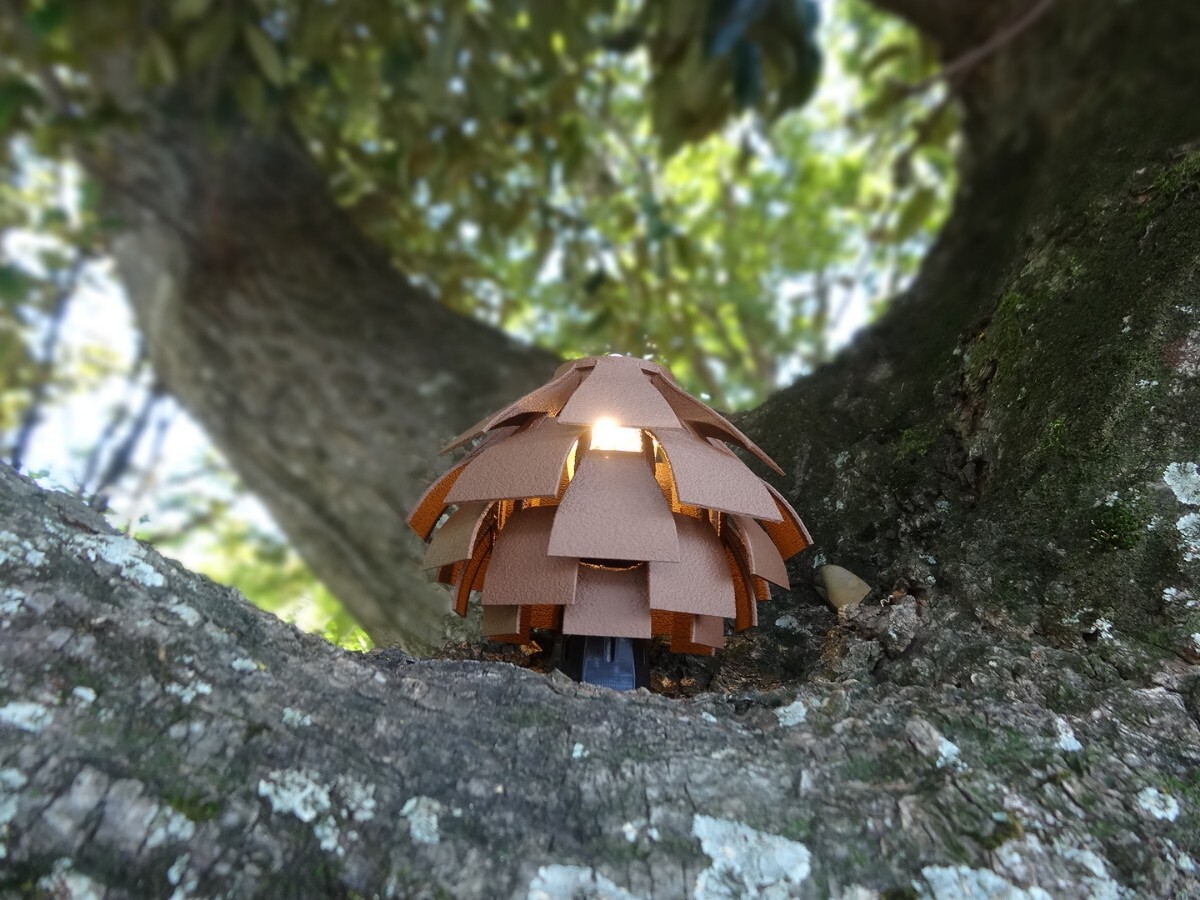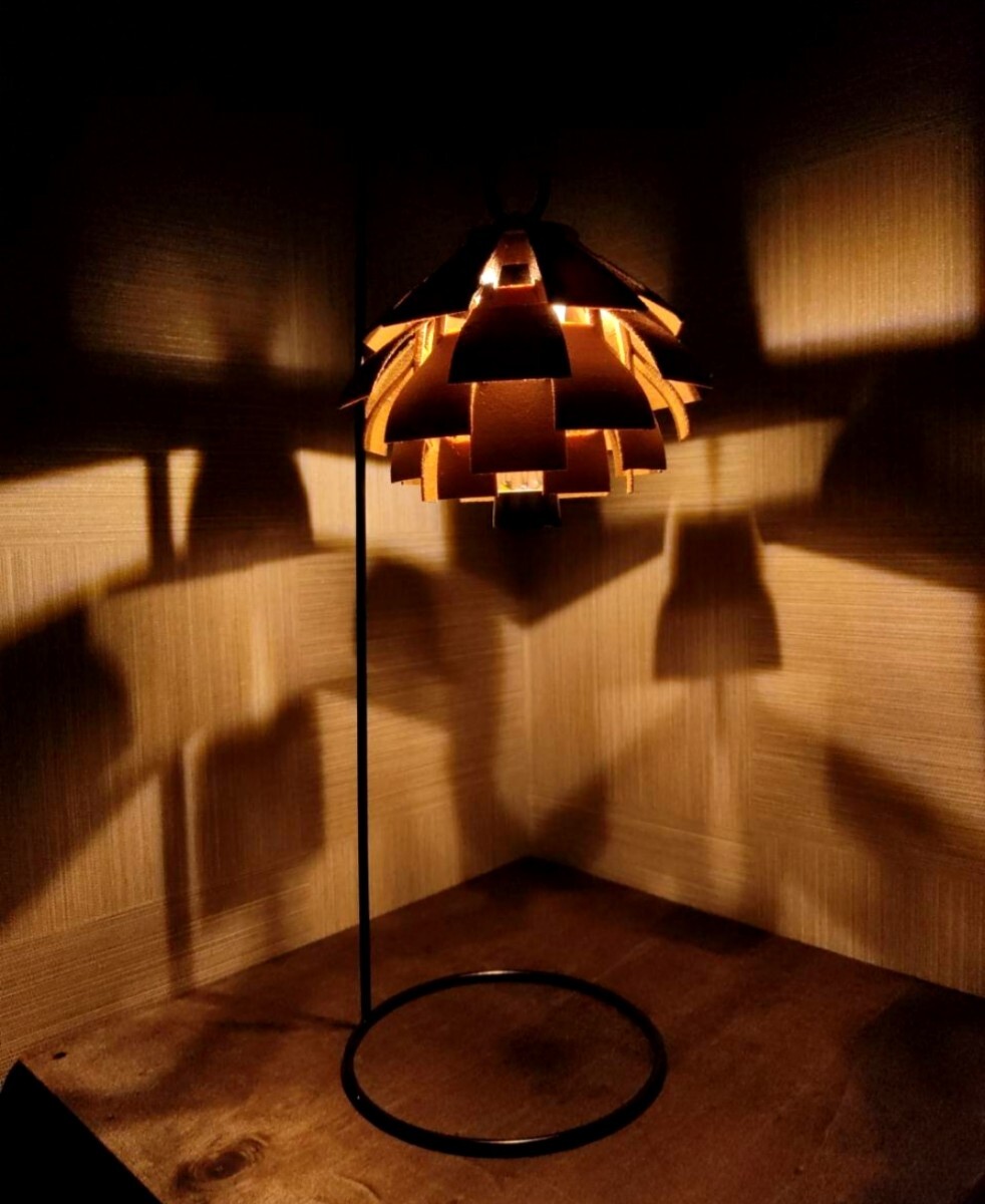 ・松ぼっくりの構造をもとに制作、点灯時は雰囲気の良い間接照明です。