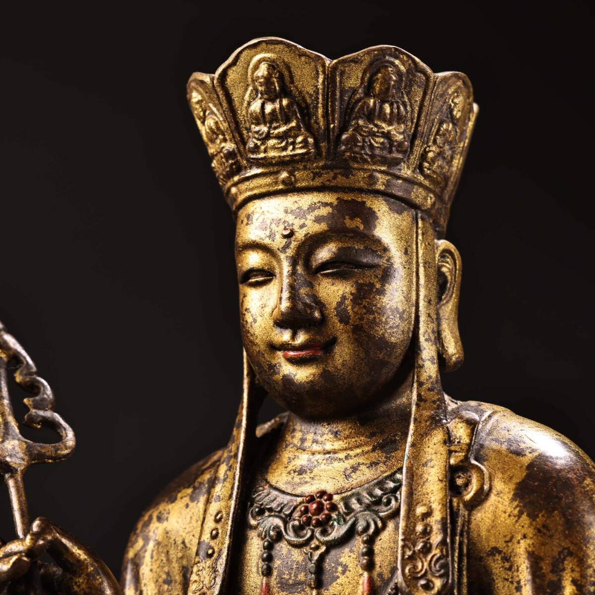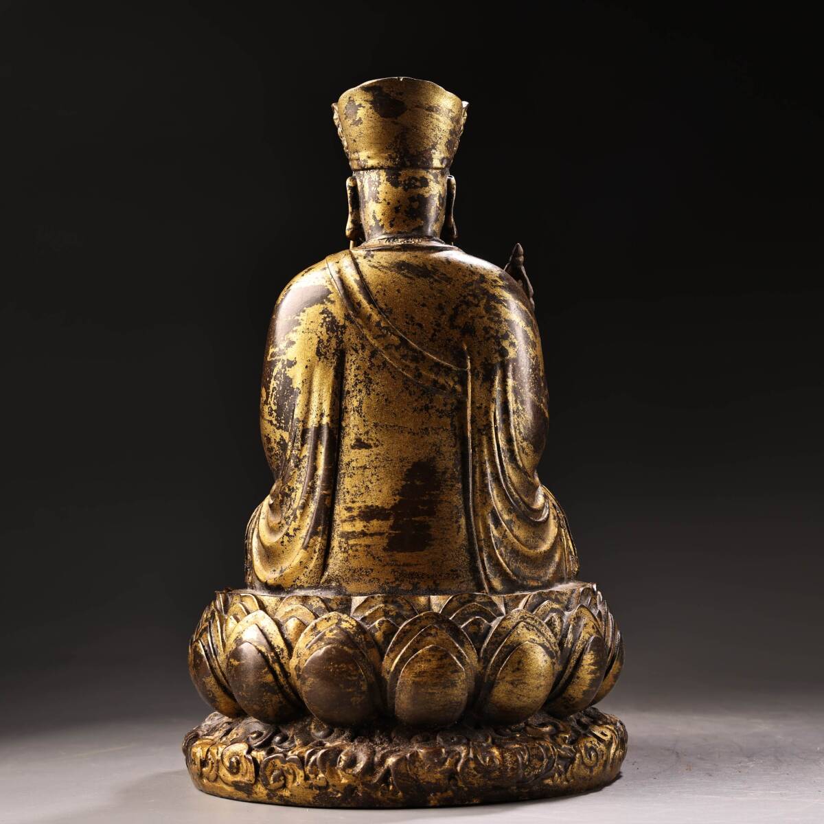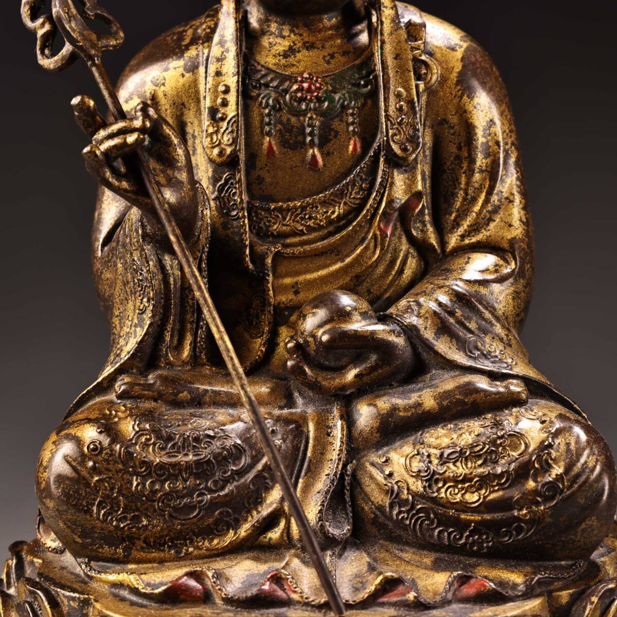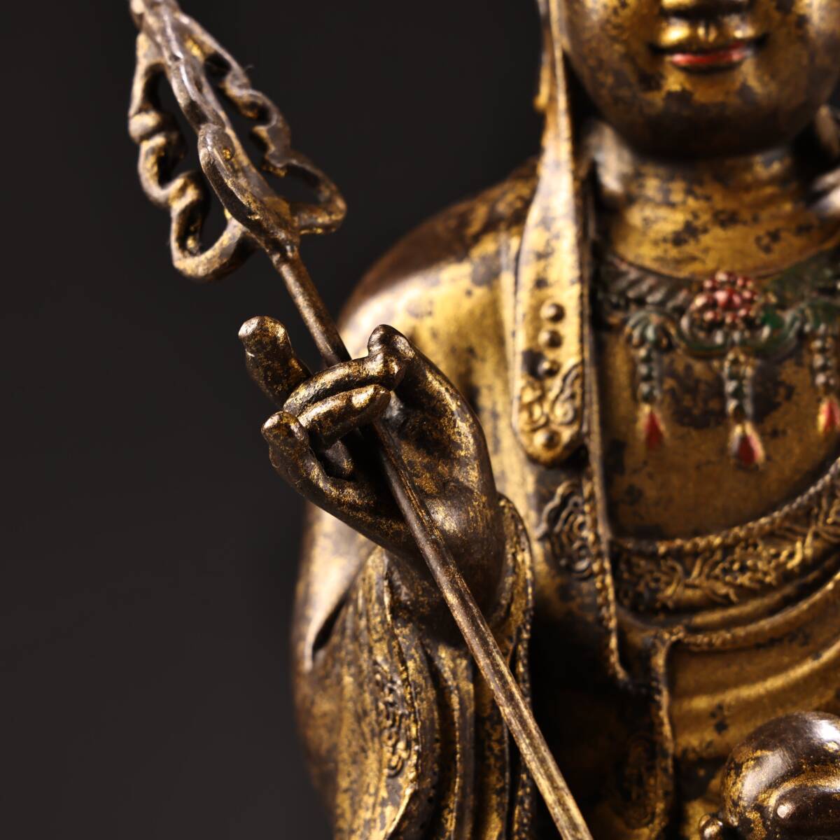 *珍品旧蔵* 清 乾隆年製 純銅 全銅 高浮彫鏨刻泥金 地蔵王菩薩 仏像 奉納されていた 供養品 銅製 銅器 極細工 唐物 中国古玩 骨董品 H48