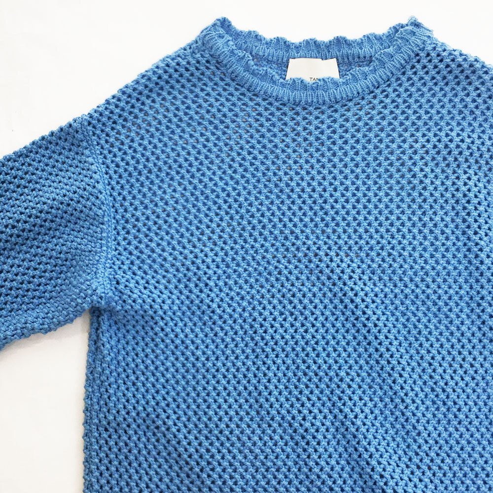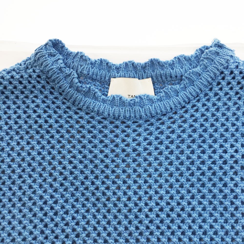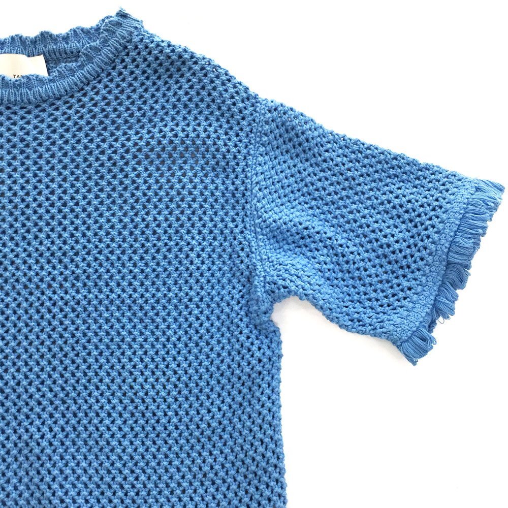 コメント | タンは、日本のファッションブランド。糸から衣装へ、をキーワードに、緻密に計算された編組織とデザインによるニットウェアを展開しています。 しっかりと厚みのあるメッシュボディが印象的なTシャツ型ニットプルオーバーです。春から初秋まで活躍します。袖口と裾にループ状のフリンジをあしらった華やかなバランスが魅力の一枚です。サンプル品と思われますので実際に販売されているお品とはデザインが異なる可能性があります。 未使用のお品です。品質表示タグが付いておりません。もちろん、傷や汚れはございません。保管上のシワや微細な擦れなどはご容赦ください。ご理解のある方の入札をお待ちしております。 |