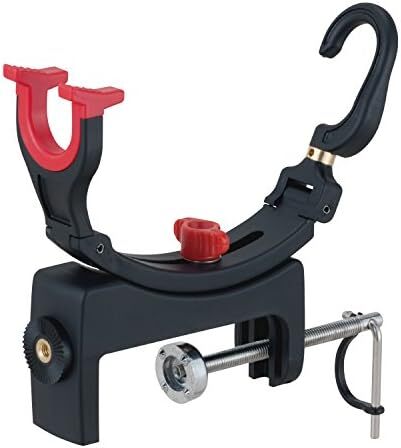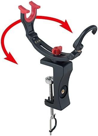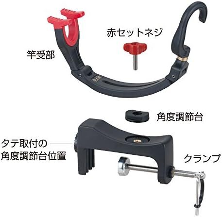 角度調節は赤セットネジを緩め、竿受部を前後・左右の好みの位置に調節後、赤セットネジを締め付けて下さい。