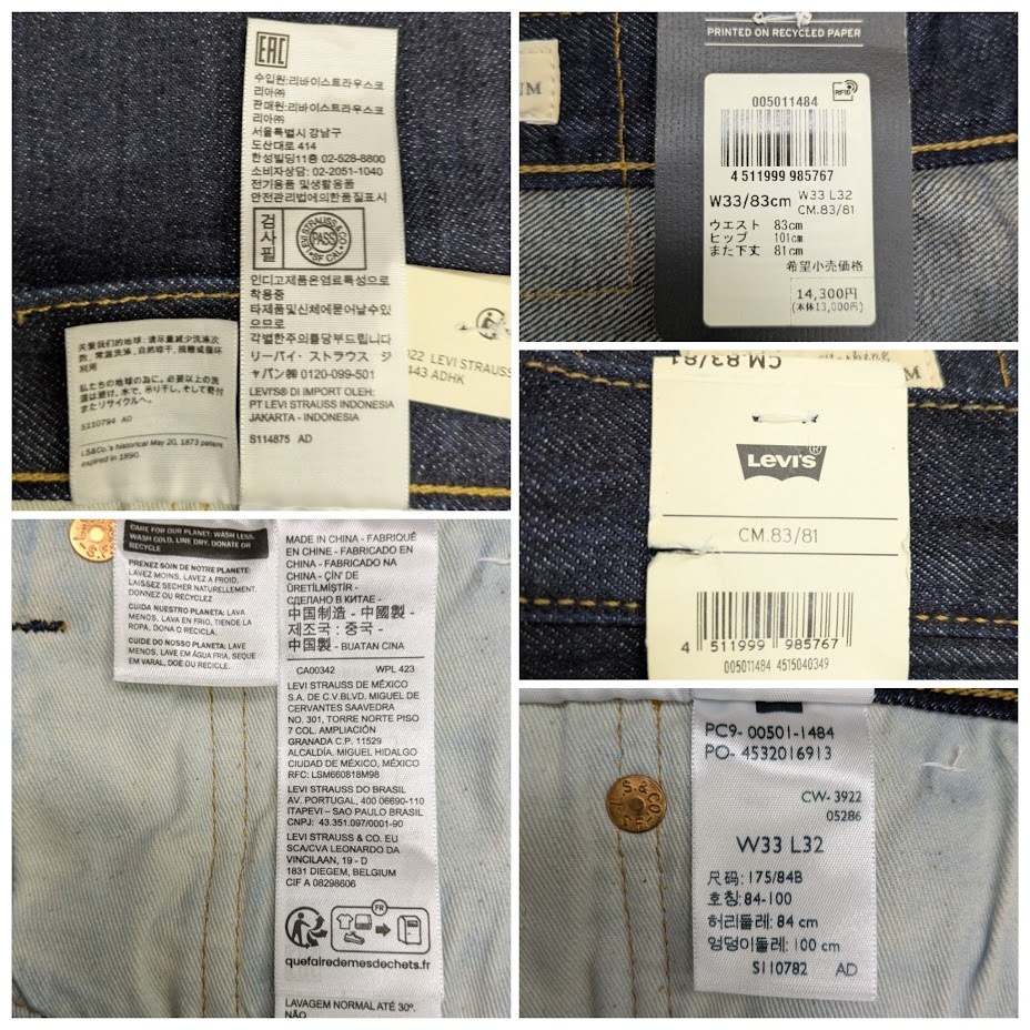 ⑤ 未使用品 Levi's リーバイス 501 ストレートパンツ ジーンズ デニム LEVI'S PREMIUM 00501-1484 サイズ 33
