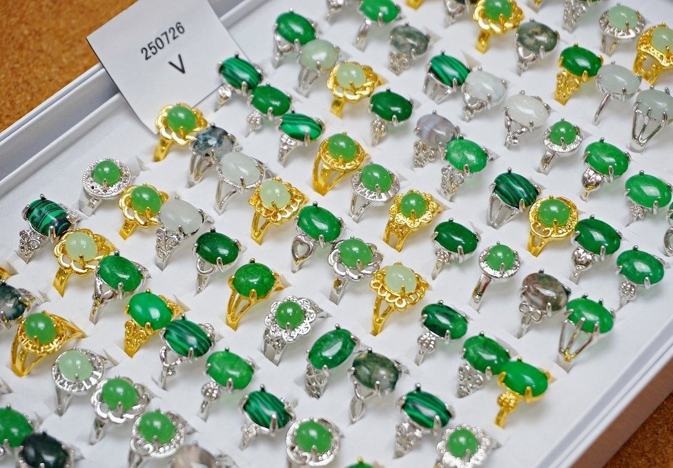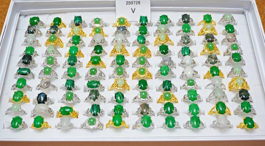 天然石 緑石 指輪 まとめて100点セット 全て天然石の緑石系 ファッションリング 100点セットです。 とても丁寧に研磨されており、艶、色味ともに非常に美しいものです。 写真がお譲りする商品の全てになります。 サイズ:約16~20mm=約10~22号 材質:瑪瑙 マラカイト 玉髄 マレー翡翠 等の天然石 個数:100点 ※ケースはおまけとして出品しますので、ケースの不具合に関しては対応はできません。 当店の他の出品商品との同梱料は下記のとおり落札1点につき200円です。 |
