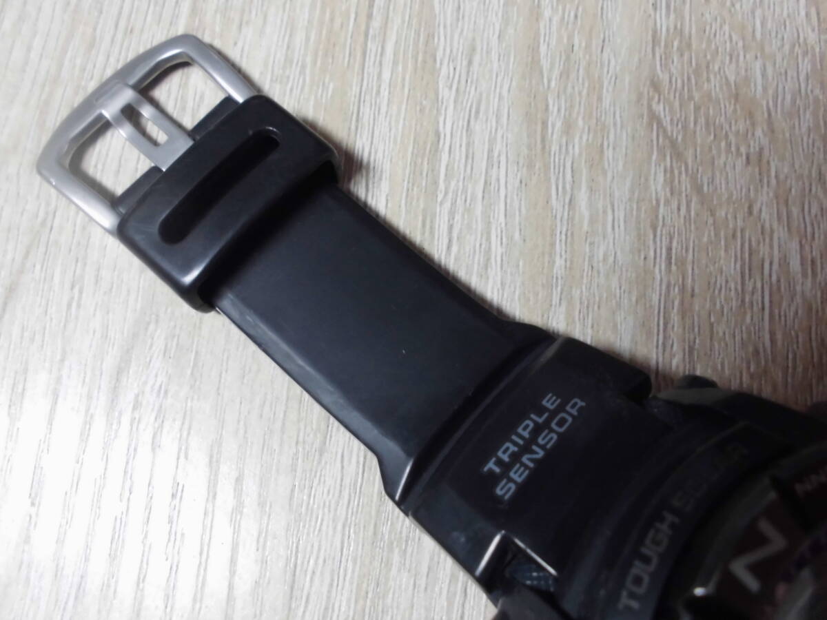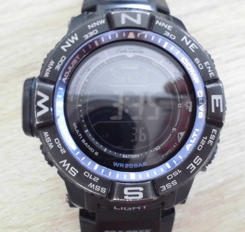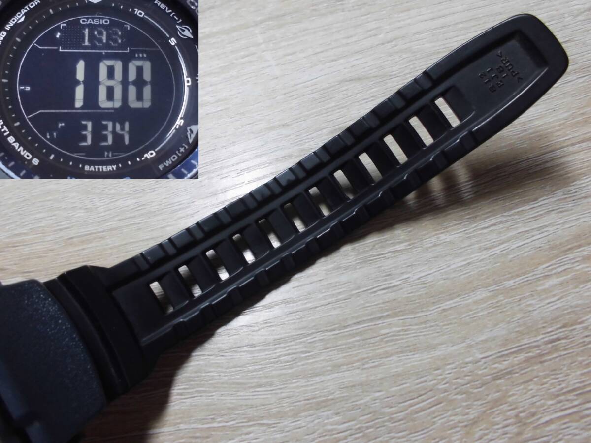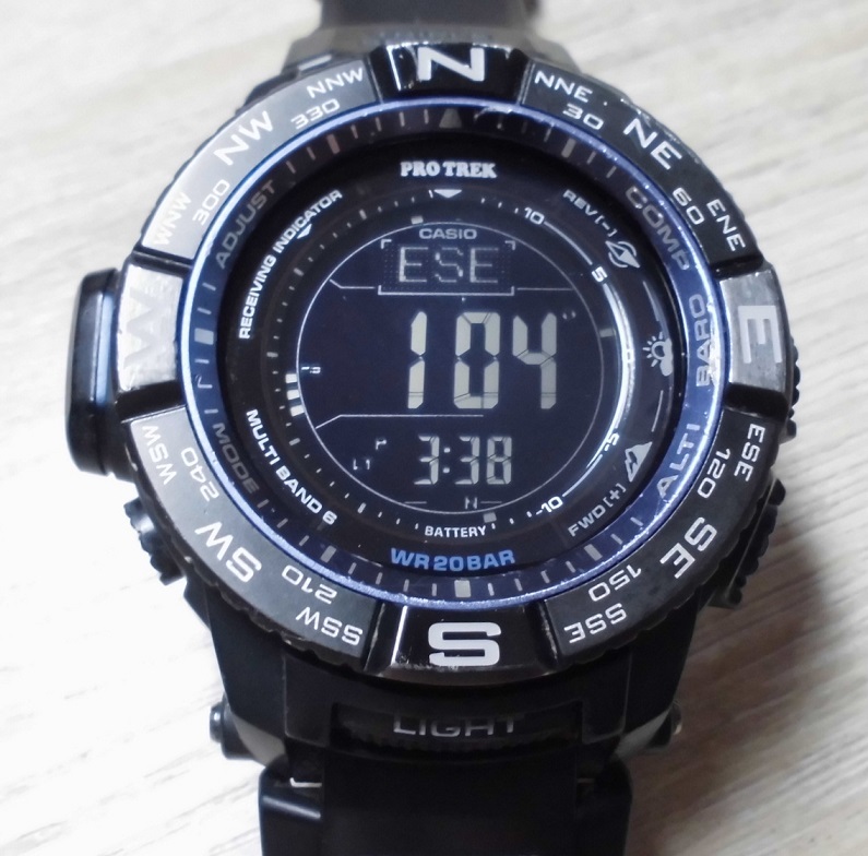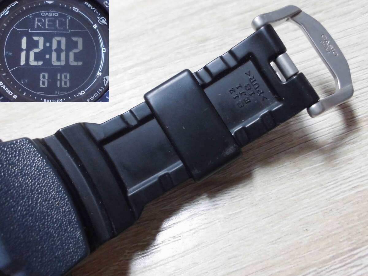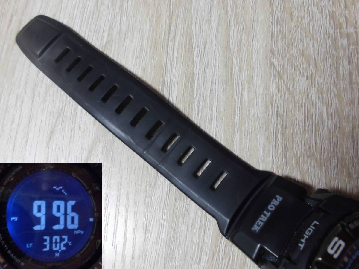 本格アウトドアギアプロトレック「MULTI FIELD LINE(マルチフィールドライン)」、20気圧防水とレジスターリングが特徴のモデル PRW-3500Y-1JF!!! 60秒間連続計測可能な方位計測機能と、回転機構により方位を簡易メモリーするメタルのレジスターリングを組み合わせることで、より分かりやすく実用的なコンパス機能を実現。レジスターリングには、凹凸のある指掛かりの良い形状を採用し、操作性を向上させています。また、新型センサーと処理能力を向上させたカシオ独自のセンサーICを組み合わせることにより、トリプルセンサーの機能を飛躍的に向上させたトリプルセンサーVer.3(※)を搭載しながら、20気圧防水というプロトレックの中でも最高の防水性能を確保。これらによりアウトドアシーンにおける、よりハードな水まわりでの使用にも対応しました。ワンプッシュで方位、気圧/ 温度、高度計測が可能な大型ダイレクトボタンには、滑り止め形状を施し、グローブ装着時でもストレスなく操作することを可能にしています。 更に、世界6局の標準電波を受信するマルチバンド6、わずかな光でも駆動するタフソーラー、急激な気圧変化を報知する気圧傾向インフォメーションアラームなどの多彩な機能を搭載。海、山など様々なフィールドでの使用に堪えうる機能と実用性を併せ持つプロトレックです。 中古です。写真の時計だけの出品です。方位や気圧、高度、温度などを計測した写真を載せていますのでご覧ください。1枚目は蛍光灯スタンドの真下で撮影、2枚目は自然光で撮影しましたので比較してください。9枚目の写真を見てもらうとわかると思いますが、REC表示されていますので電波受信OKです。写真撮影時はバッテリーがフル充電の状態で、ライトが点灯し動作中です。中古なので全体に使用感スリキズ汚れなどがあります。 |