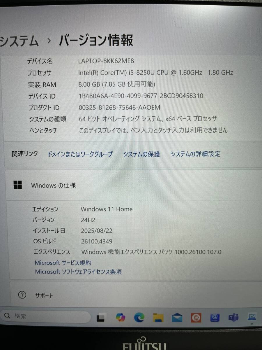 fujitsu LIFEBOOK FMV SH75/C3 FMVS75C3W Corei5-8250U 1.6GHz 8世代 メモリ8GB SSD512GB windows11(win10復元可)