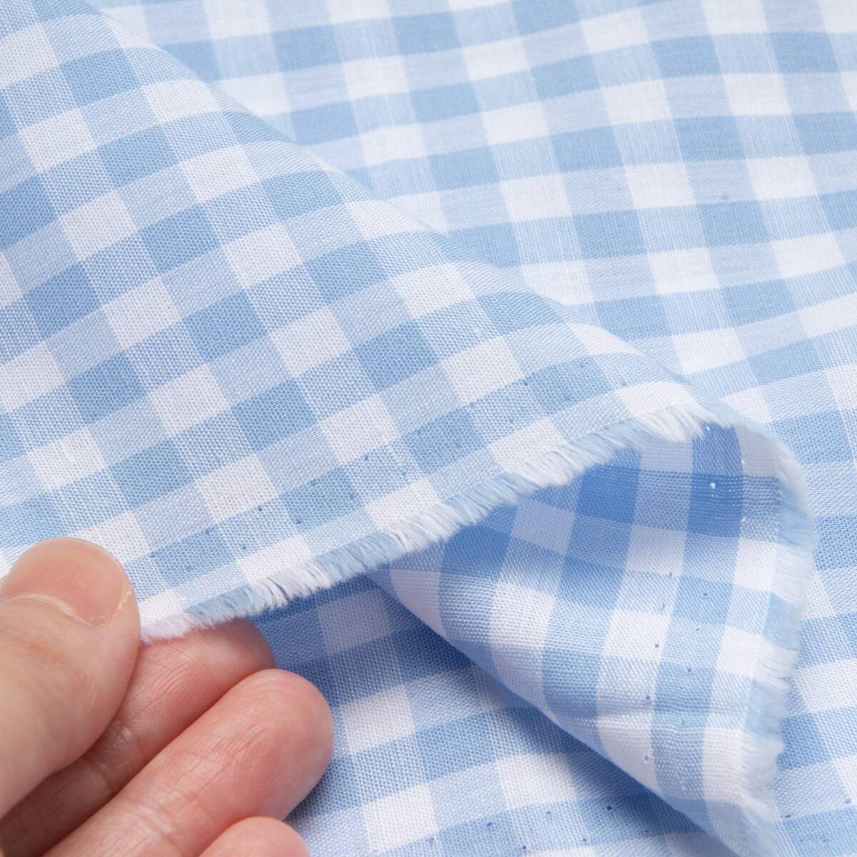 KIYOHARA ギンガムチェック6mm 生地 シャンブレー 薄手 約110cm巾×2mカット Col.BL ライトブルー G1002-2