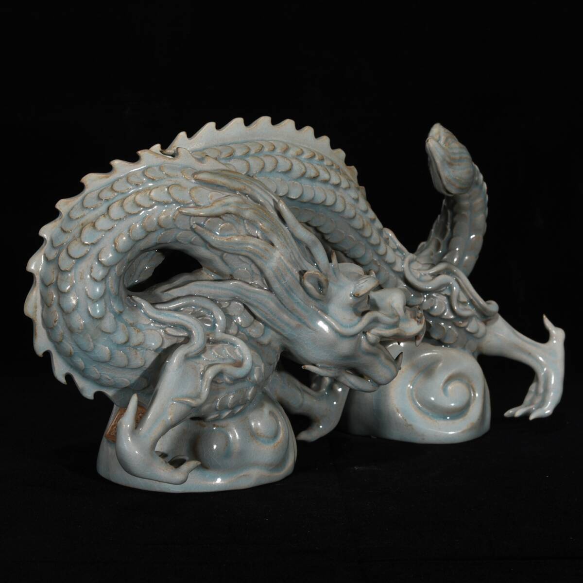 *珍品旧蔵* 宋 汝窯 竜騰四海 陶芸 古陶磁器 中国磁器 極細工 唐物 中国古玩 骨董品 古美味 H48