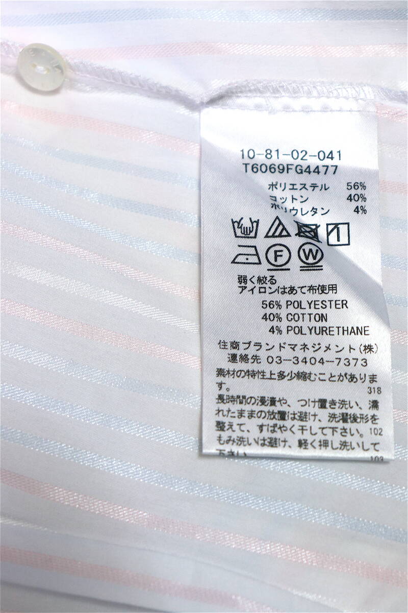 ポリエステル56%、綿40%、ポリウレタン4%、シワになりにくくアイロン不要。