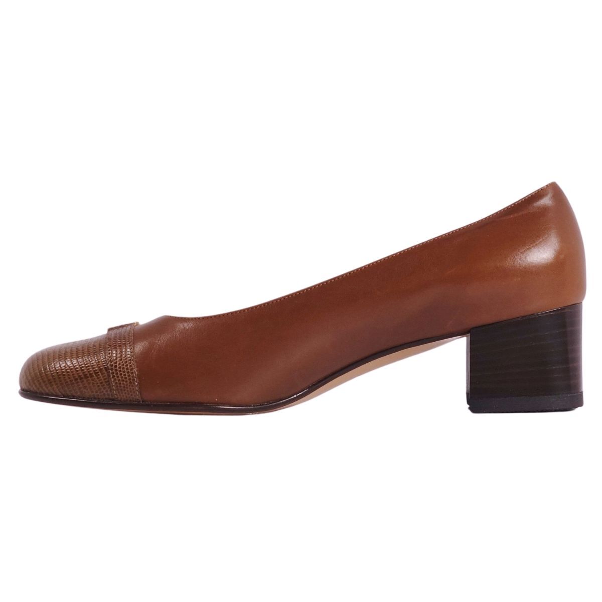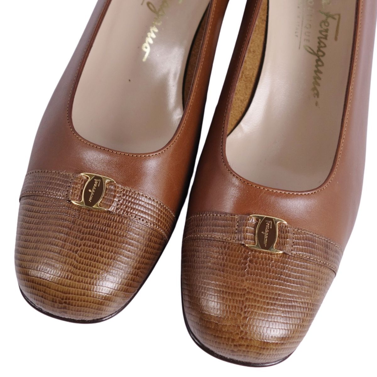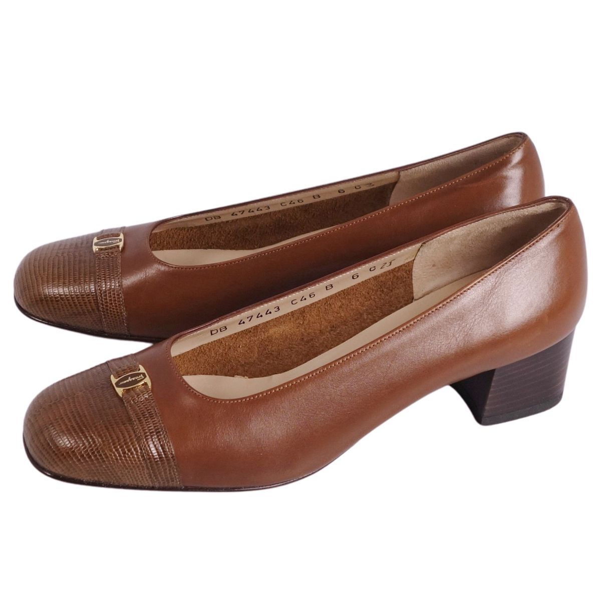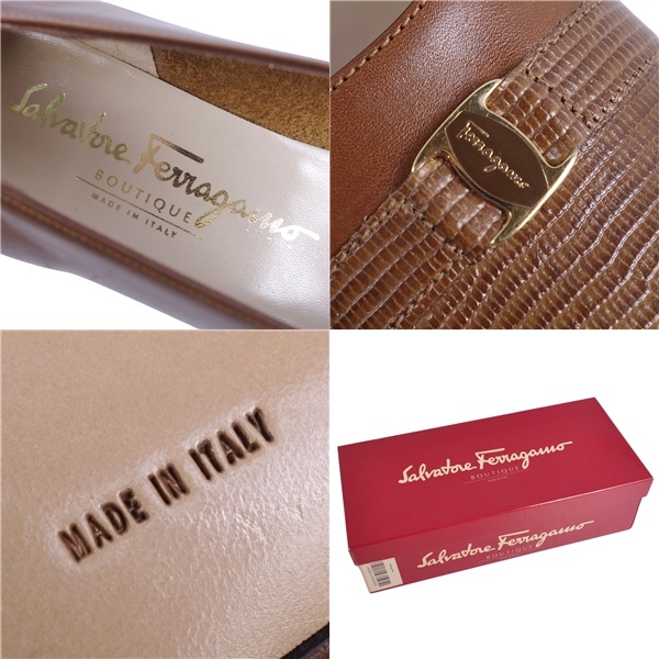 未使用 サルヴァトーレ フェラガモ Salvatore Ferragamo パンプス ヴァラ リザード型押し 6C(23.5cm相当) ブラウン |