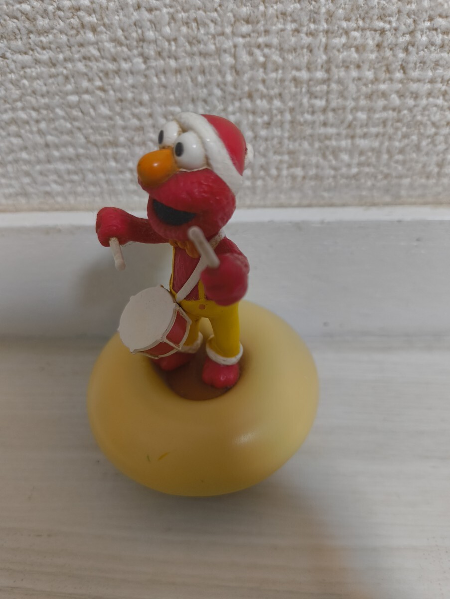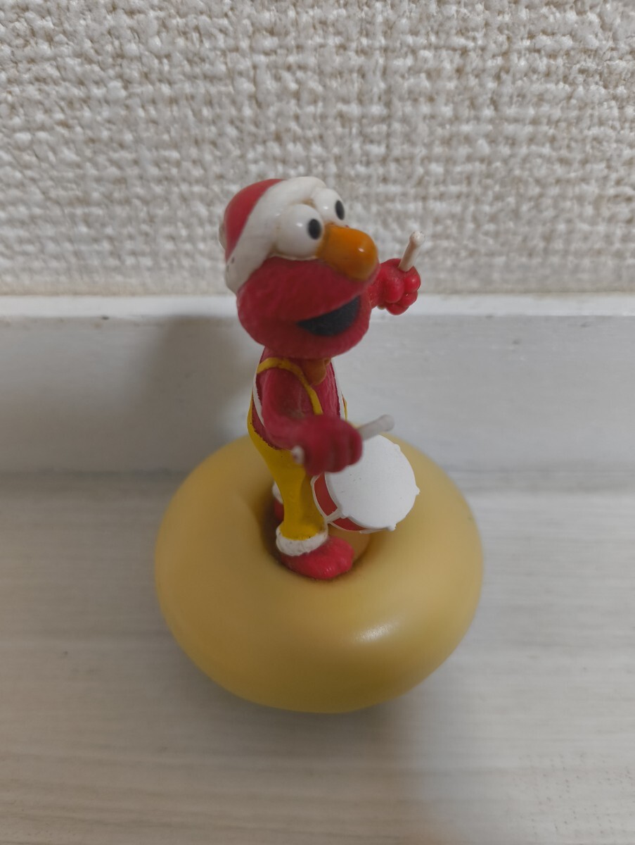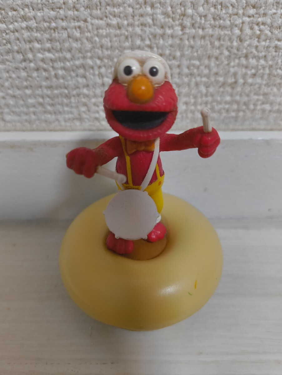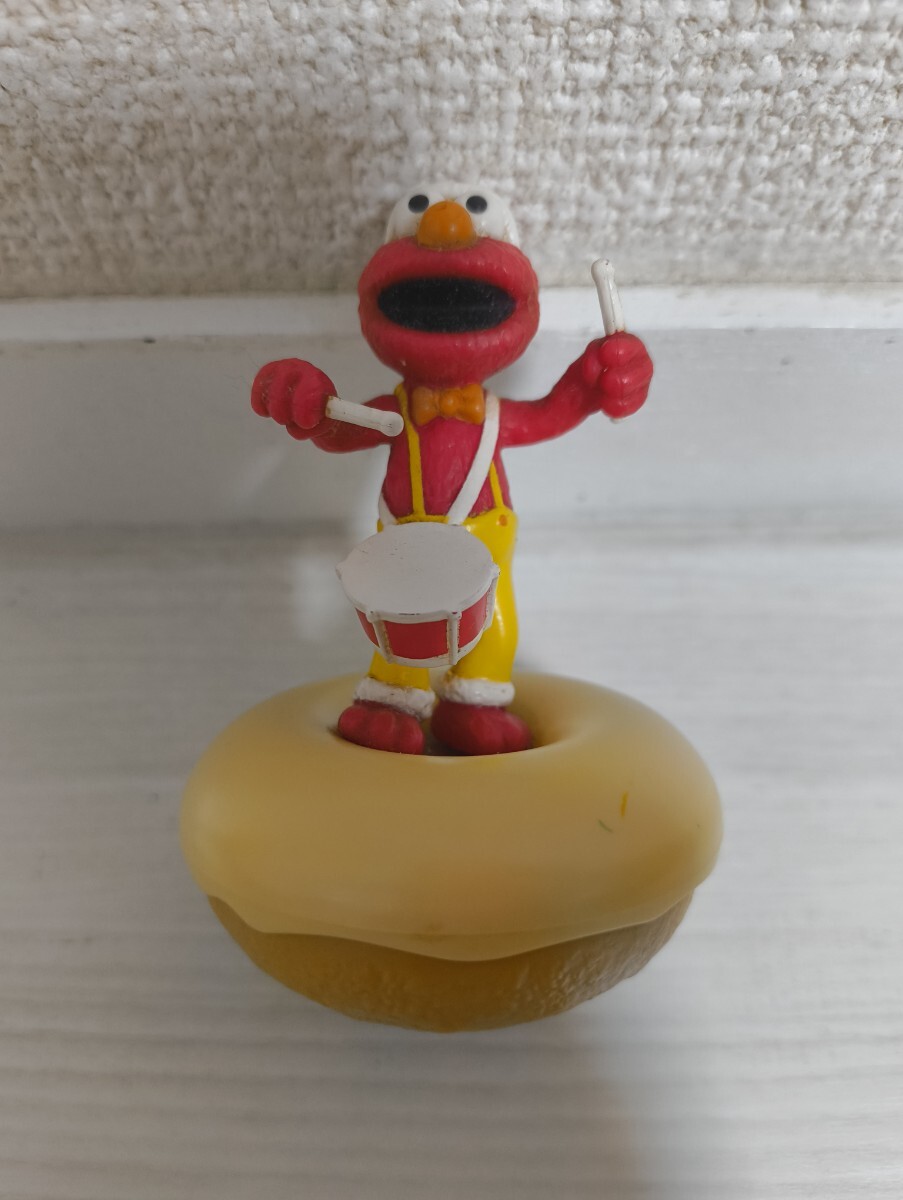 ミスタードーナツに乗りドラム演奏しながら話すエルモ レア セサミストリート フィギュア ヴィンテージ