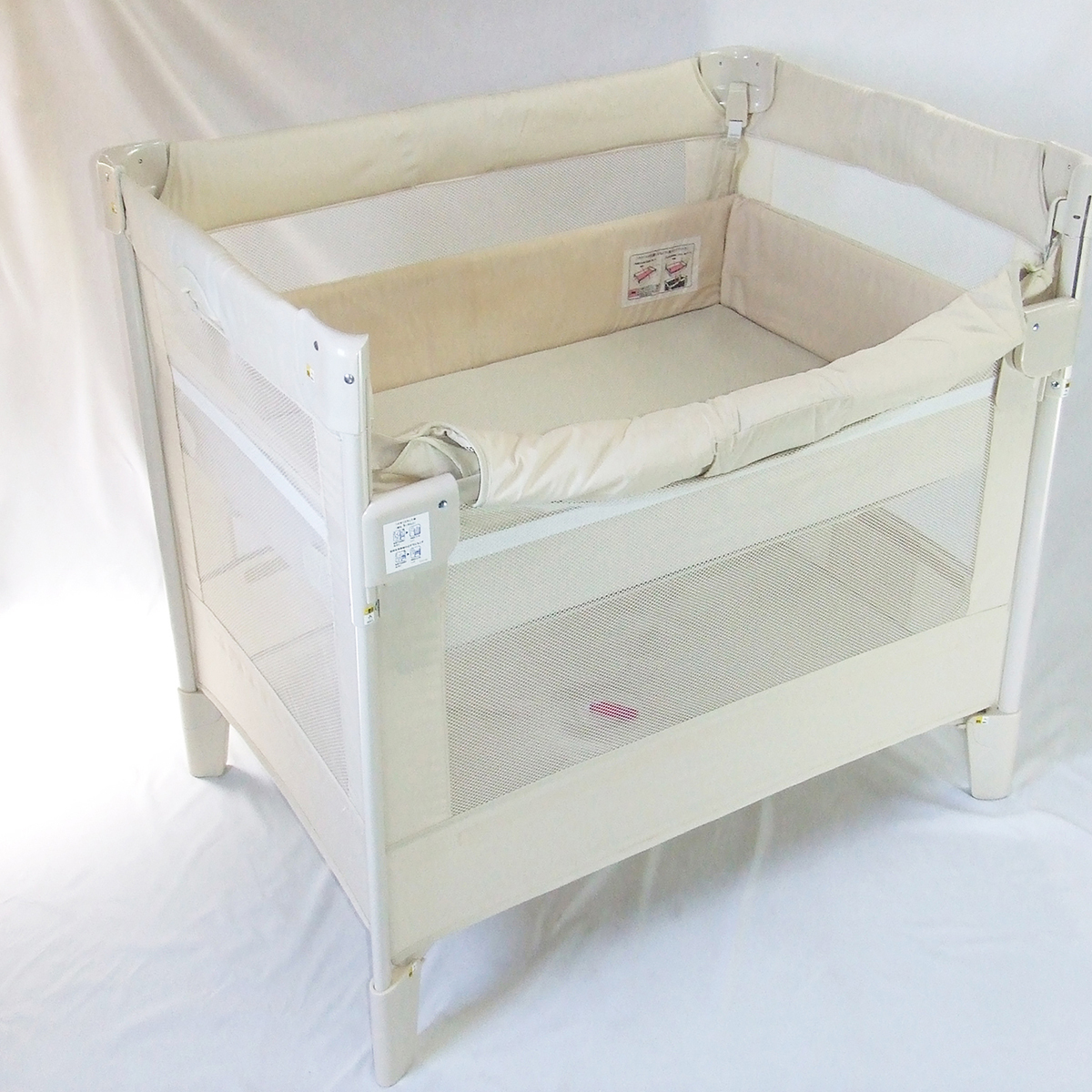ねむれる・たためる・運べるベッド。 ムレから守る『エアー』のココネルです。 コンパクトに折りたたんで自在に持ち運びできるから、家族旅行や帰省の時など、どこへ行っても安心・快適な環境で眠らせてあげられる新発想のベビーベッドです。 床板の高さを変え、プレイヤードとしても使えます。 【製品仕様】現状優先 ・対象年齢:新生児~24ヶ月頃(適応体重2.5kg~13kg以下) ・本体重量:14.9kg約 ・サイズ:約開:W1041×D737×H950(mm)、閉:W290×D270×H950(mm) ・PSCマーク取得品 ・製品安全協会乳幼児用ベッドSG合格品 |