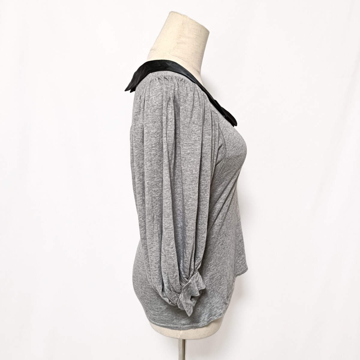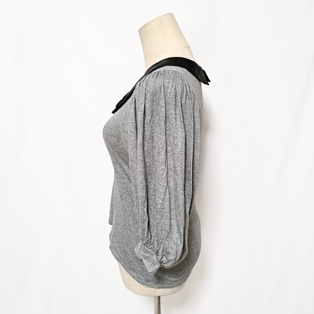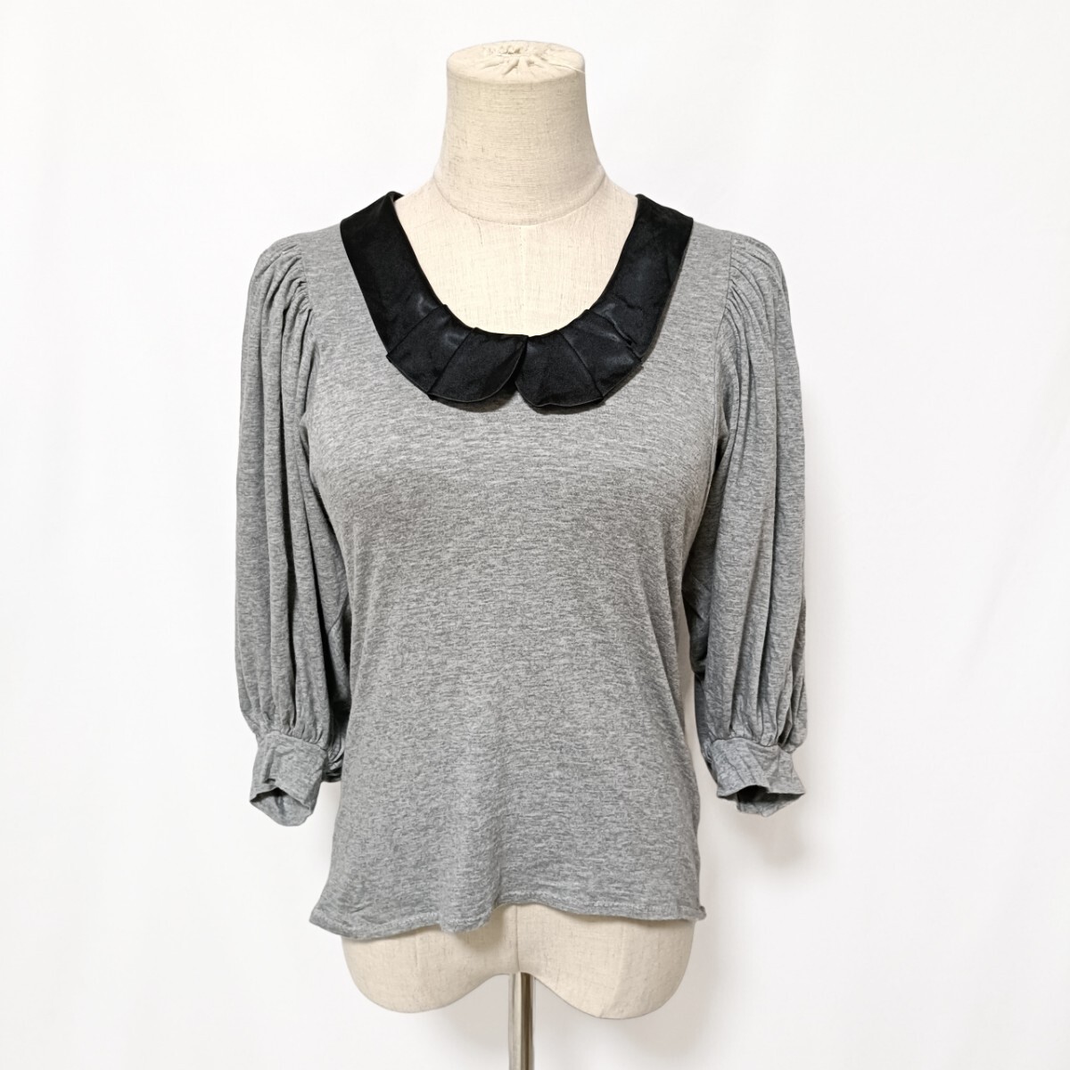 【美品】ロイスクレヨン 異素材切り替え襟トップス パフスリーブ M 半袖カットソー グレー レディース