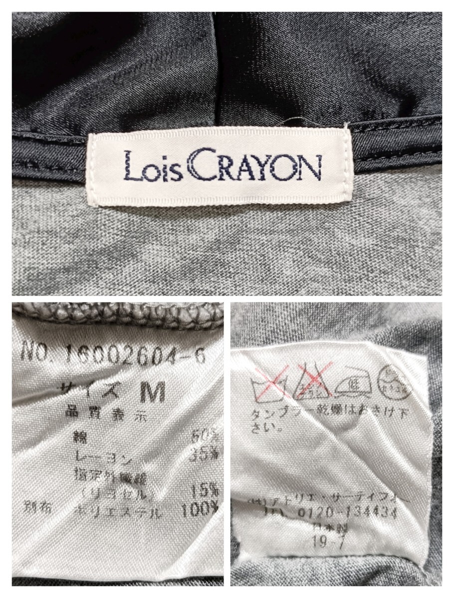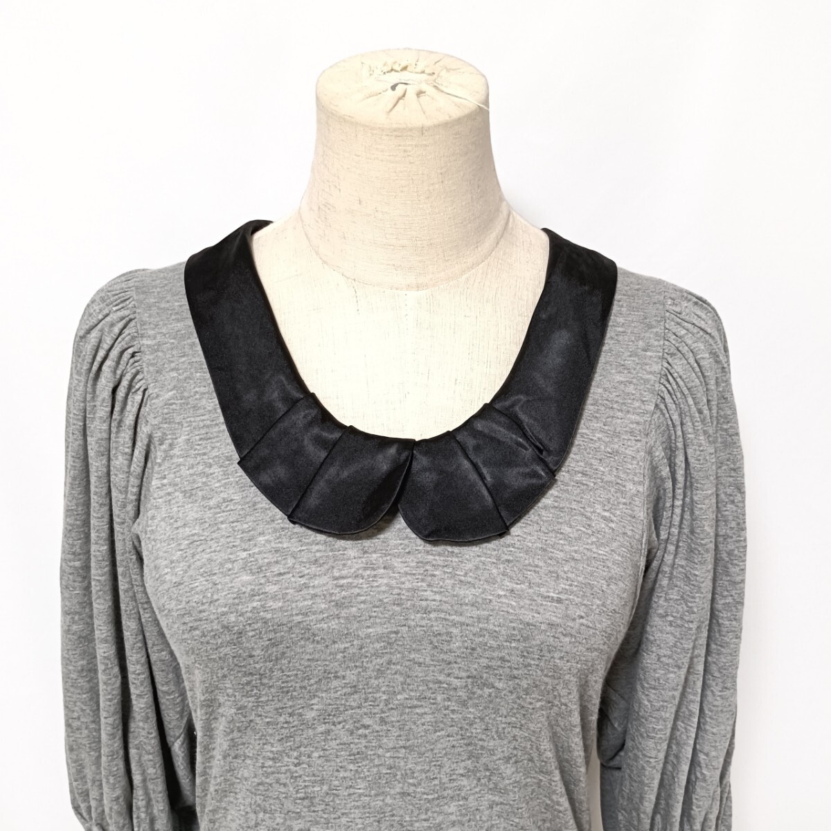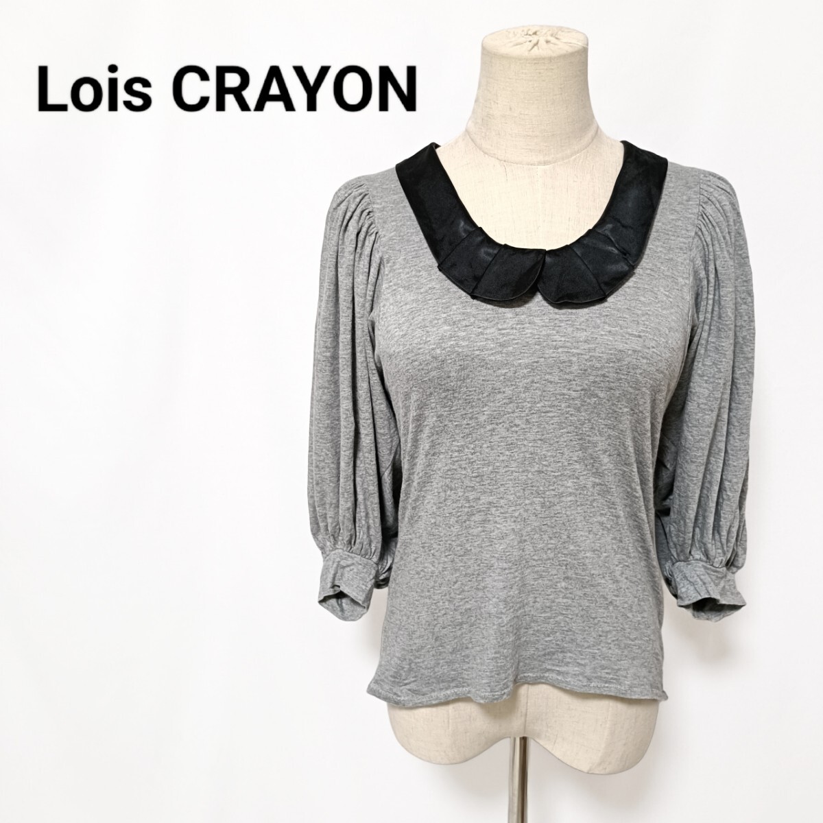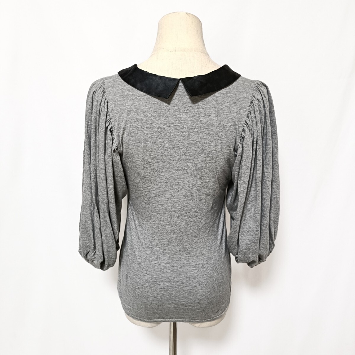 【美品】ロイスクレヨン 異素材切り替え襟トップス パフスリーブ M 半袖カットソー グレー レディース