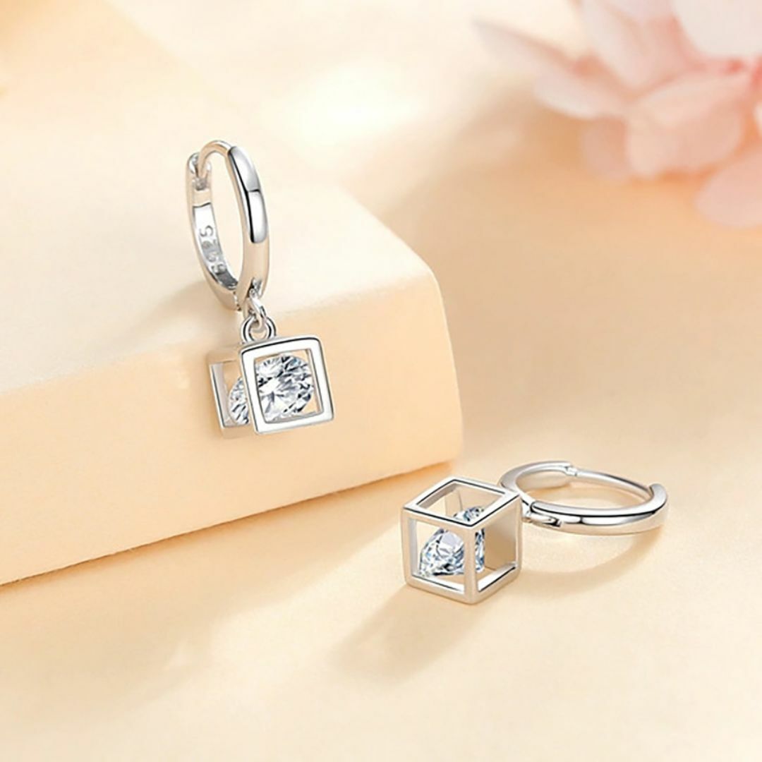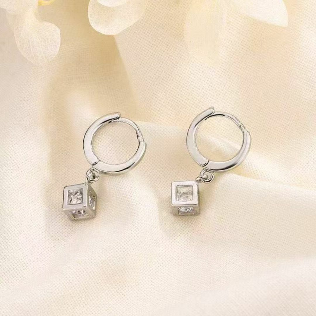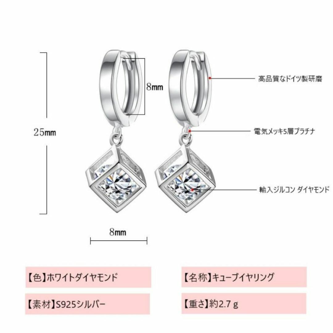 ピアス イヤリング キューブ 幾何学 S925シルバー CZ プラチナ仕上げ