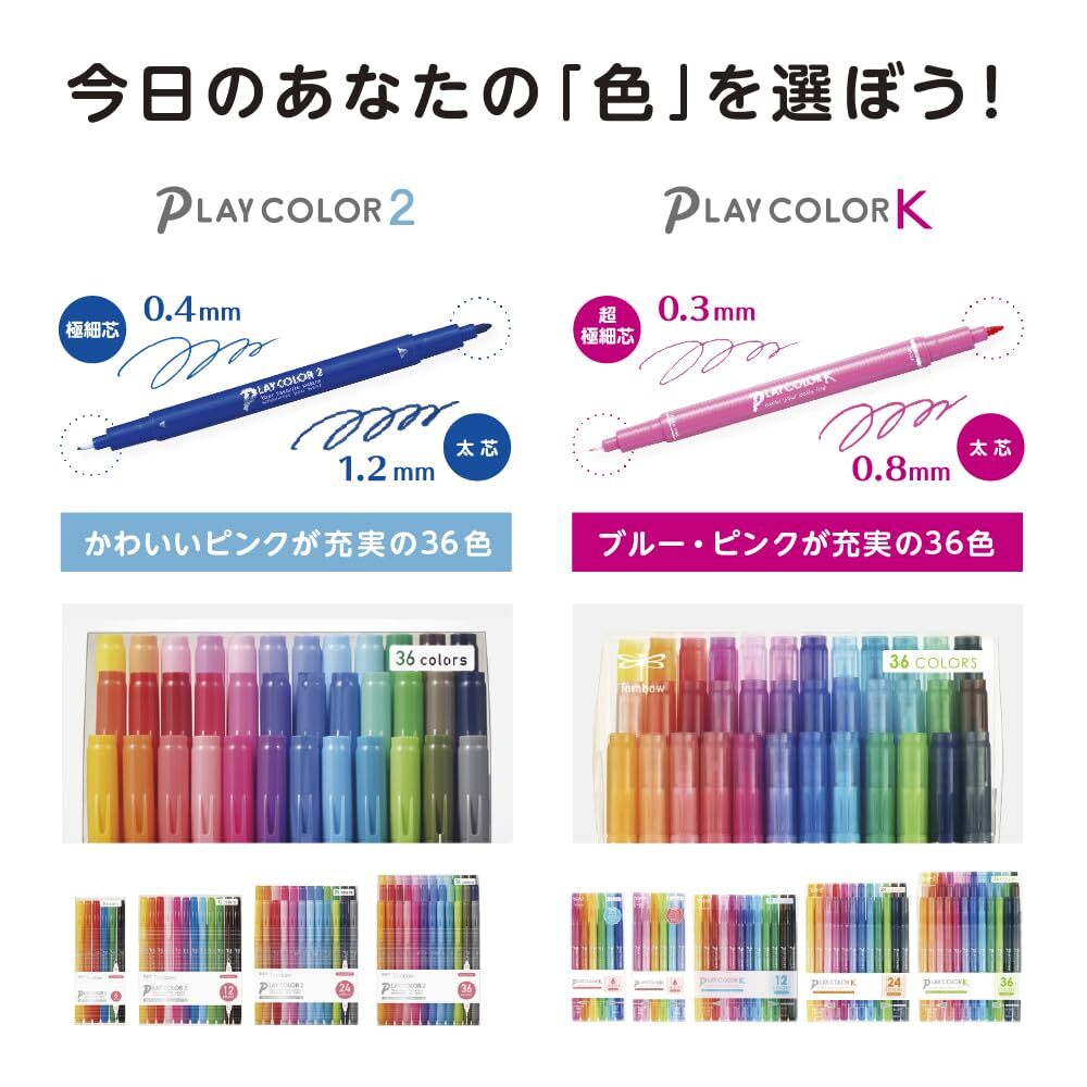 トンボ鉛筆 水性 サインペン 12色 (太1.2mm&細0.4mm ツインタイプ) カラーペン プレイカラー2 GCB-011