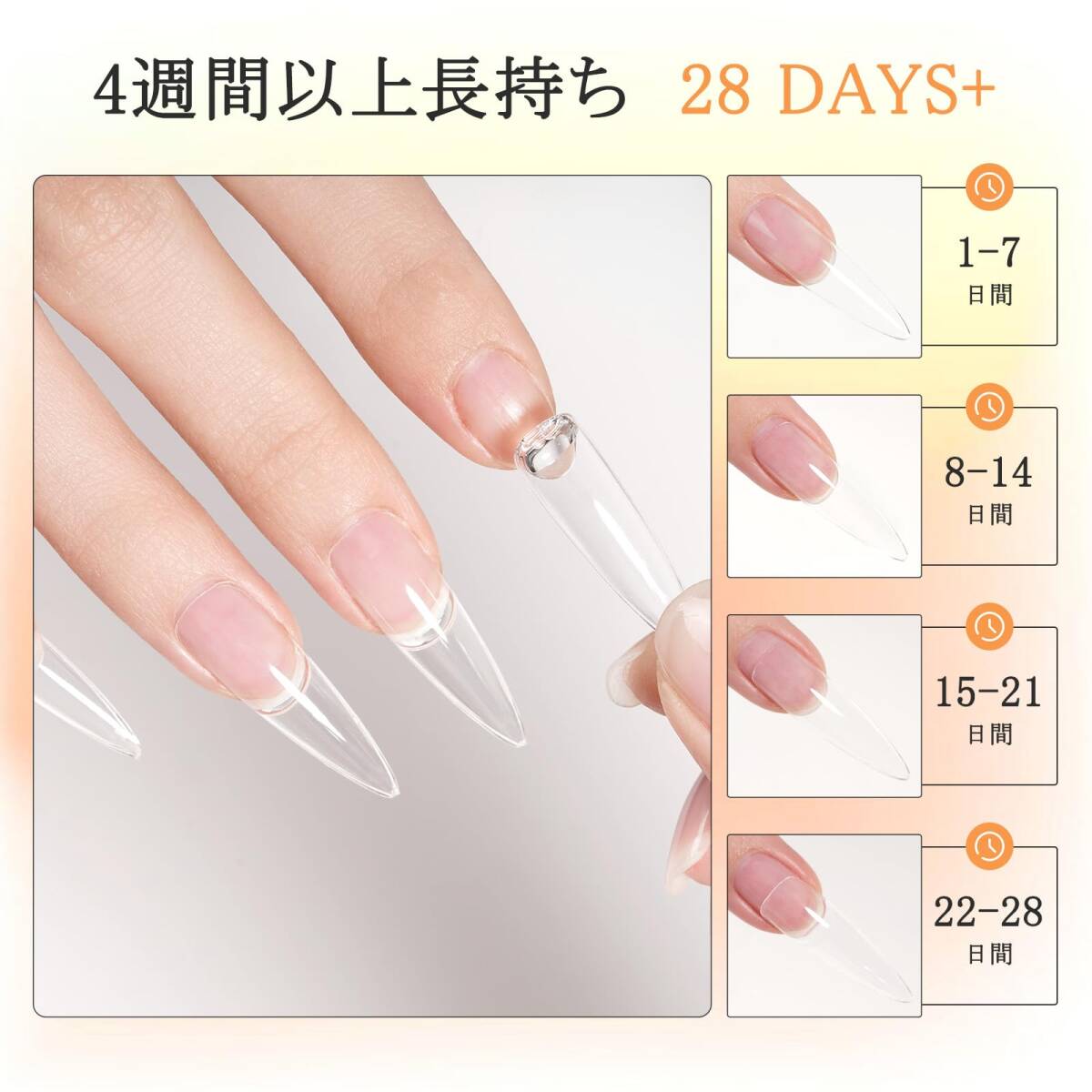 【簡単に使える】:本品はチューブ型のデザインで、必要な量だけ簡単に絞り出すことができ、無駄がありません。優れた伸縮性と適度な粘度を持ち、ブラシ不要で使用でき、気泡も発生しません。取り外しが簡単、アセトンを爪の端に塗り、木棒を使ってすき間を軽く広げると、ネイルチップを簡単に外すことができます。ご自宅でネイルアートをお手軽に楽しむことができます。初心者さんでも扱いやすい逸品です。