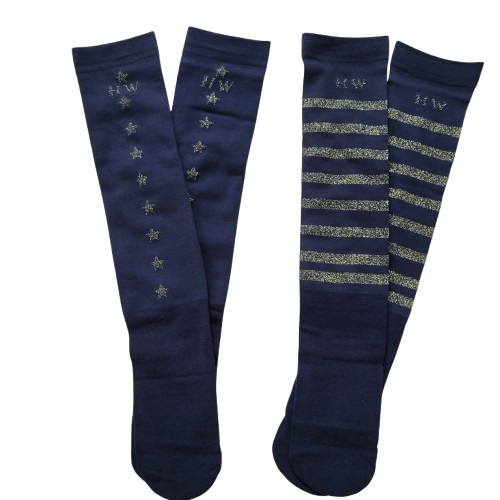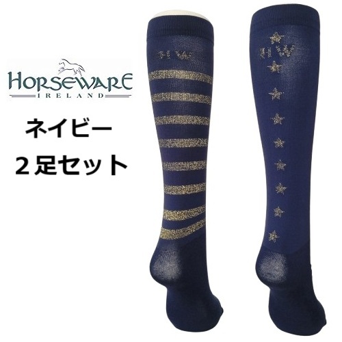 Horseware ラメネイビー 2足セット ライディングショーソックス 乗馬靴下 馬術 乗馬ウェア 乗馬用品