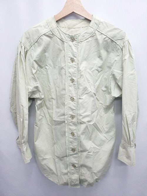 ◇ Θ エヌ ナチュラルビューティーベーシック デザイン 長袖 シャツ ブラウス サイズM ライトグリーン系 レディース E