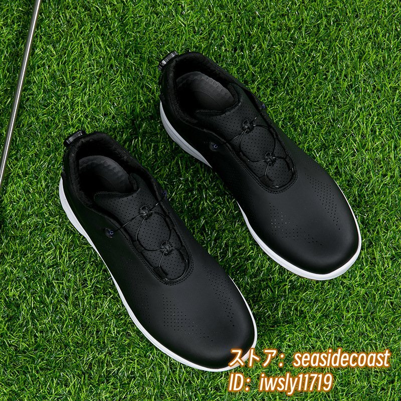 高級品◆GOLF靴 ゴルフシューズ 男女 スニーカー メンズ 運動靴 快適 防水 スポーツシューズ 耐久性 4E 幅広 カジュアル ブラック 27.5cm