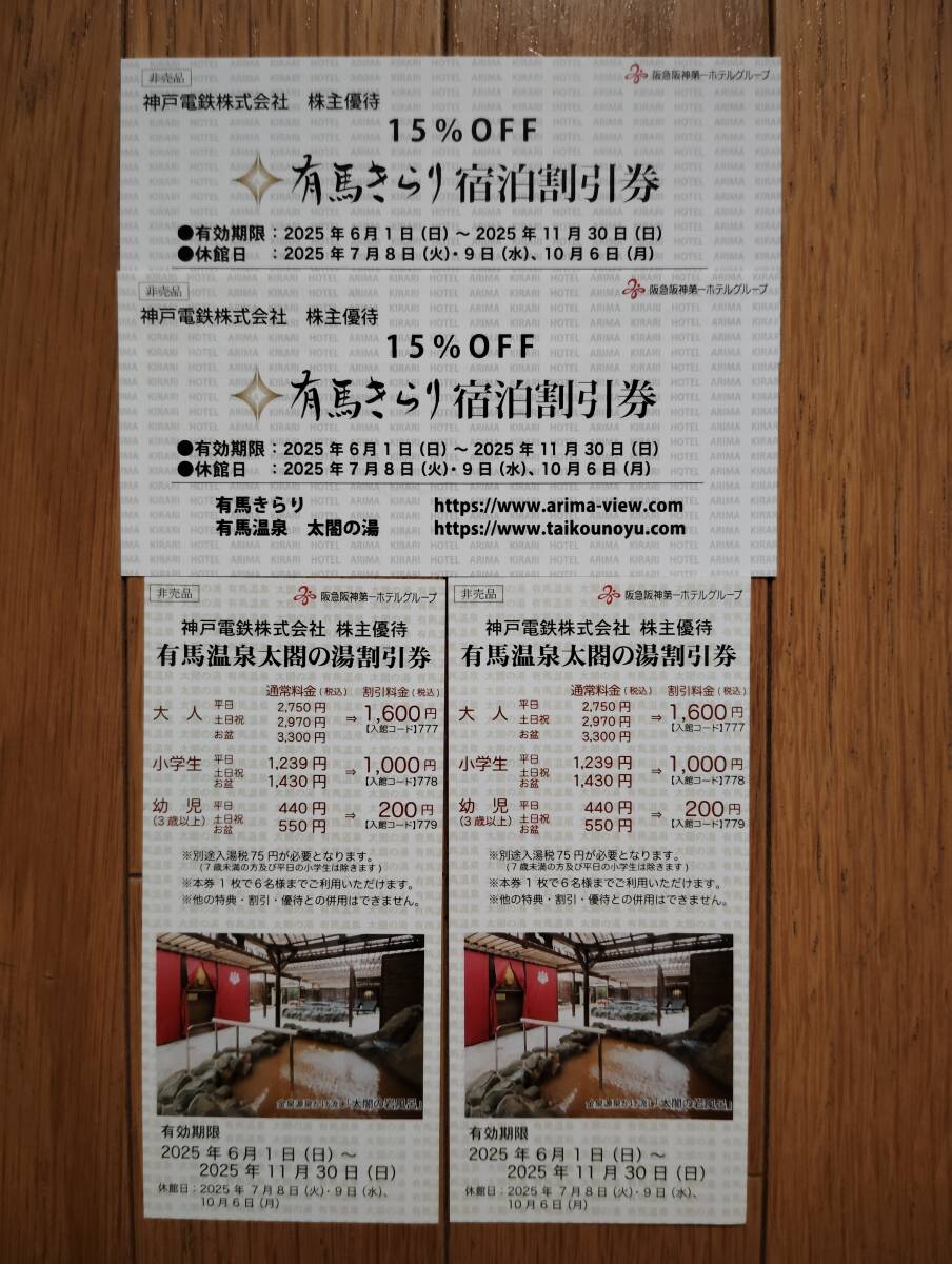 【定額/即決・匿名配送無料】 有馬温泉 太閤の湯 割引券 2枚 & 有馬きらり 宿泊割引券(15%OFF) 2枚■神戸電鉄 株主優待券②