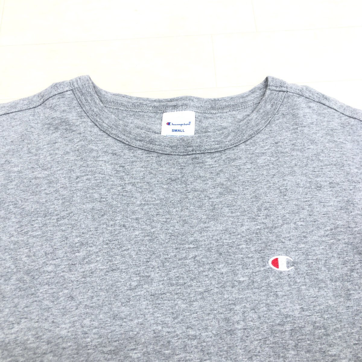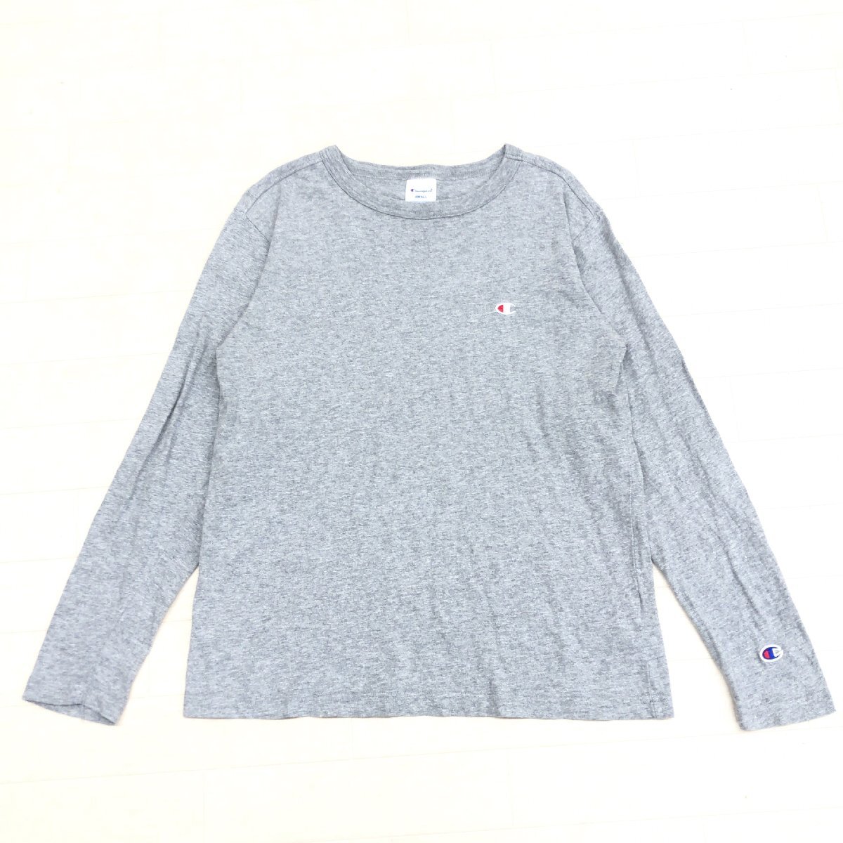 Champion チャンピオン ロゴ刺繍 コットン ベーシック ロングスリーブ Tシャツ S グレー 長袖 ロンT アメカジ 古着 国内正規品 メンズ 紳士