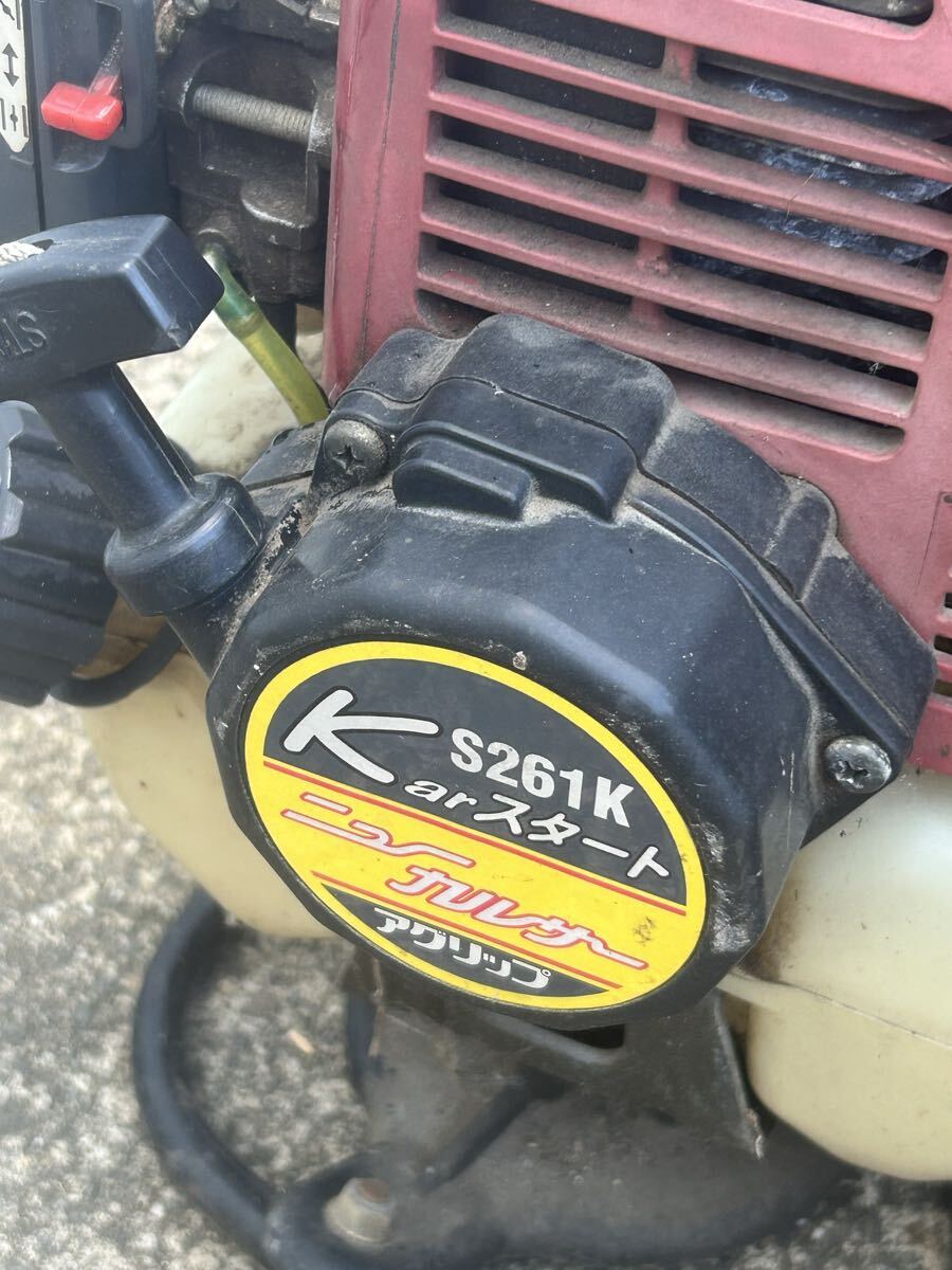 中古品、 エンジン始動吹上良好,人の部分も回転良好、刃欠品になります、現状渡し、傷、汚れ、錆などがあります、ご了承の上に入札をお願いします。 ※動画確認はこちら: アグリップ 背負い式草刈機 S261K
