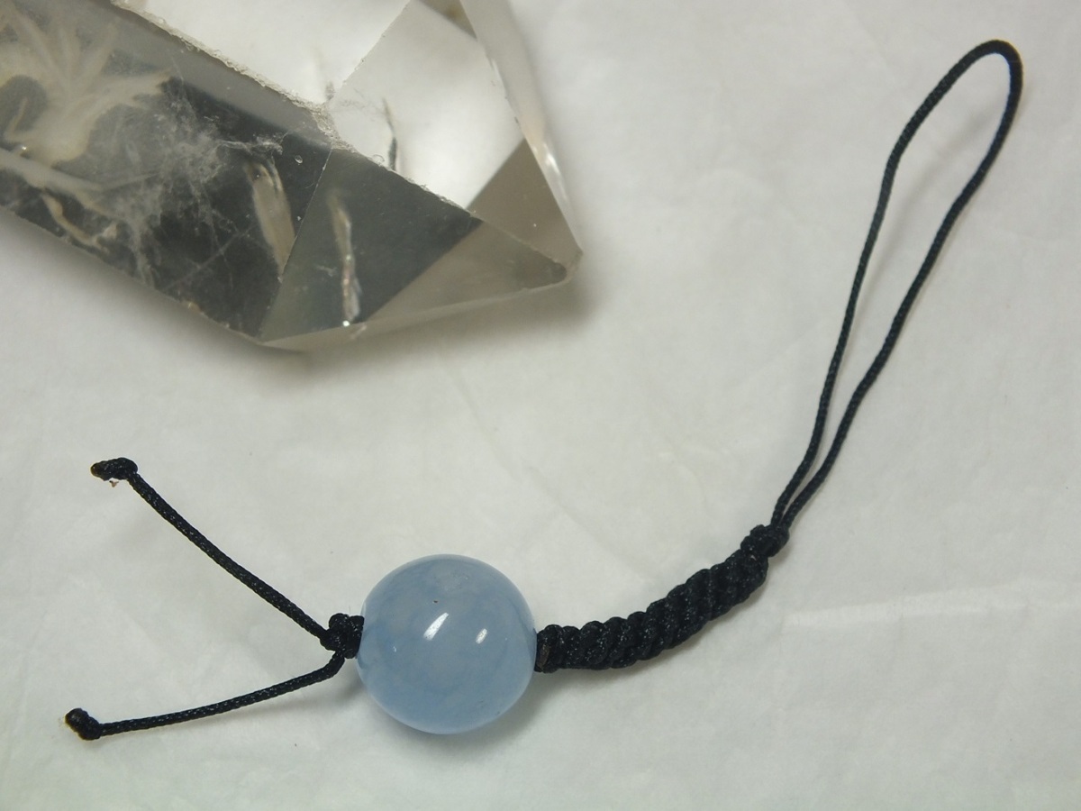 | ▲▽■龍香堂■ ミャンマー氷種翡翠13mm玉ストラップ(淡青)即決△▼ | |