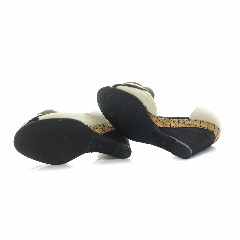 シャネル CHANEL パンプス レザー ロゴ ウェッジソール オープントゥ 35.5 22.5cm アイボリー ■GY18 /MQ ■OH レディース