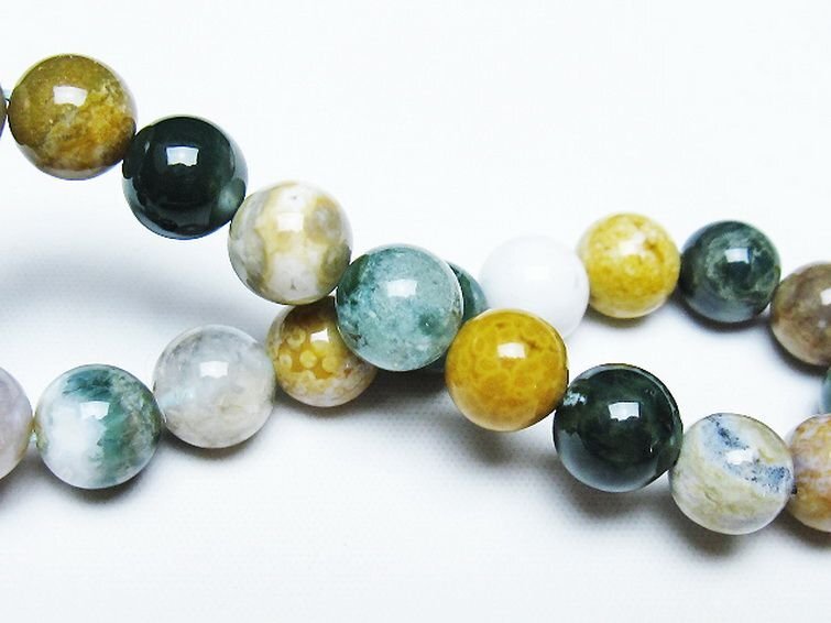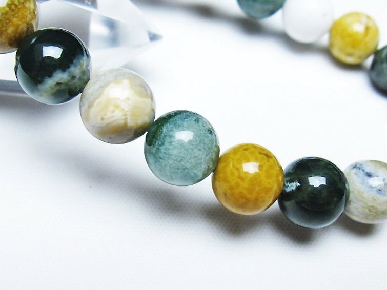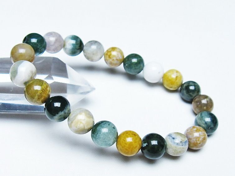 | ■商品名: オーシャンジャスパー ブレスレット ■商品ID: T153-3374 ■商品重量:約 21.5g ■商品サイズ:内周約:158mm(±5mm)粒直径約:9mm(±0.5mm) 【ジャスパー(碧玉)】 ジャスパーは石英の結晶に様々な不純物が混じり結合した鉱物で、アゲートやカルセドニーと同じ仲間です。 構成が似ているため分類が難しいのですが、基本的に不純物の割合が多く不透明のものがジャスパーとされています。 抽象画のような味わい深い模様を持つものや鮮やかな色合いを持つものなど多彩な表情を持ち、個性を楽しめる石のひとつだといえるでしょう。 ジャスパーは日本にも縁が深く弥生時代から管玉や勾玉に加工され古くから装飾品として愛用されてきました。 なかでも島根県の玉造温泉は玉造石を使った勾玉の名産地だったといわれており、この土地で産出されたジャスパーは玉造石のひとつとして「出雲石」という別名でも親しまれています。 このほかにも青森県で産出される「綿石」もジャスパーを含んだ美石として知られています。 ジャスパーは正しい判断力と決断力をもたらすとされ、心身の疲労やストレスを癒すヒーリング効果も期待されます。 バランスをとる能力に長けた石ですので、仕事や人間関係でうまく立ち回りたい方や、生活に安定や平穏を望む方に特におすすめです。 ⇒ ジャスパーをもっと詳しく ◆ワンポイント情報 ジャスパーは不純物の成分によって色合いが大きく異なります。ヘマタイトを含有したものは赤色、クローライトを含有したものは緑色、クレイ粘土などの不純物が含有した黄色など、多彩な色合いのジャスパーが存在します。 |