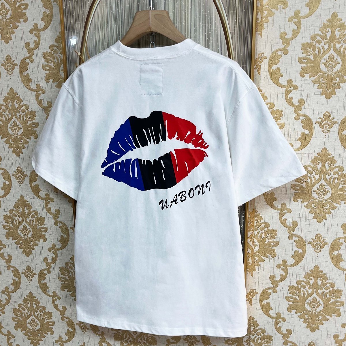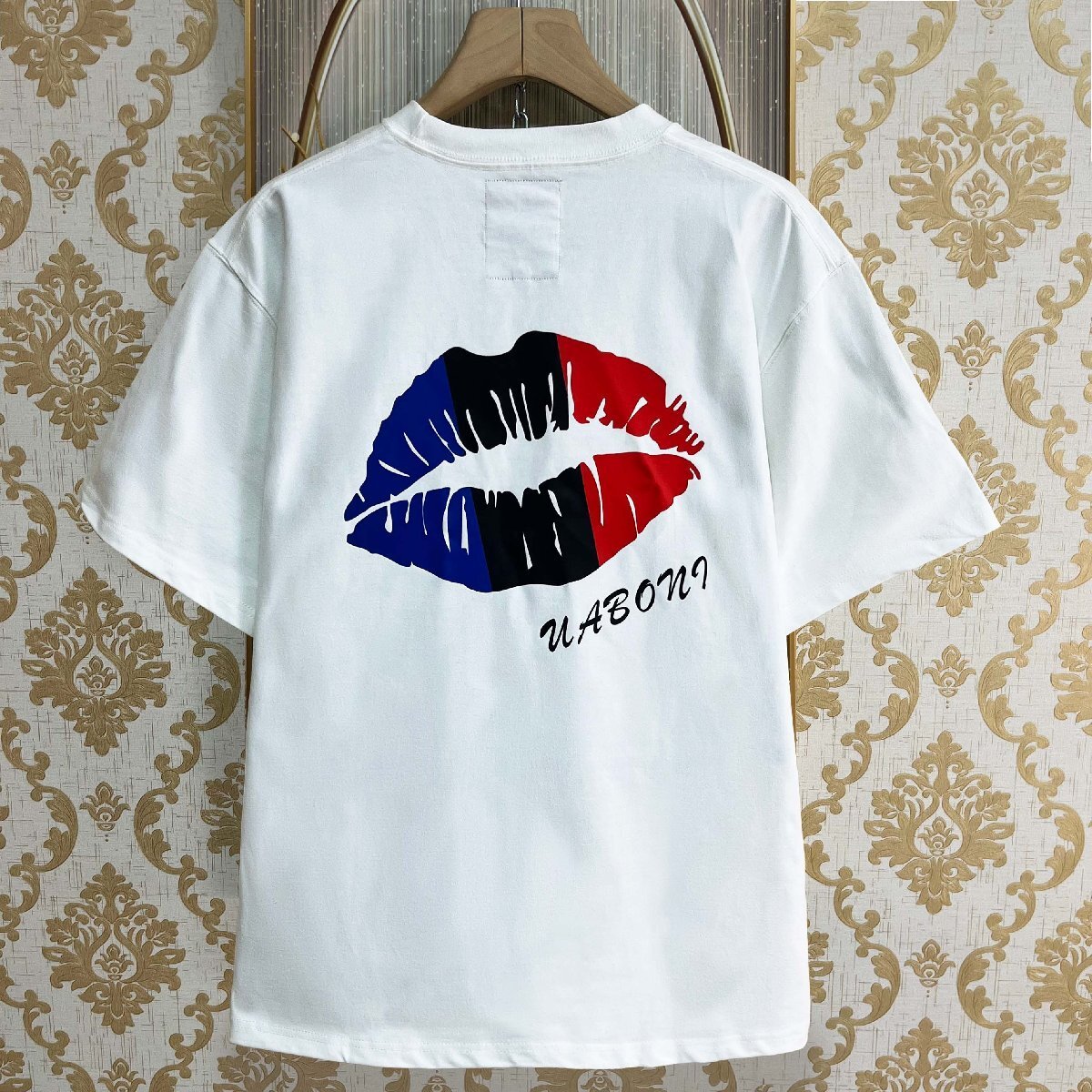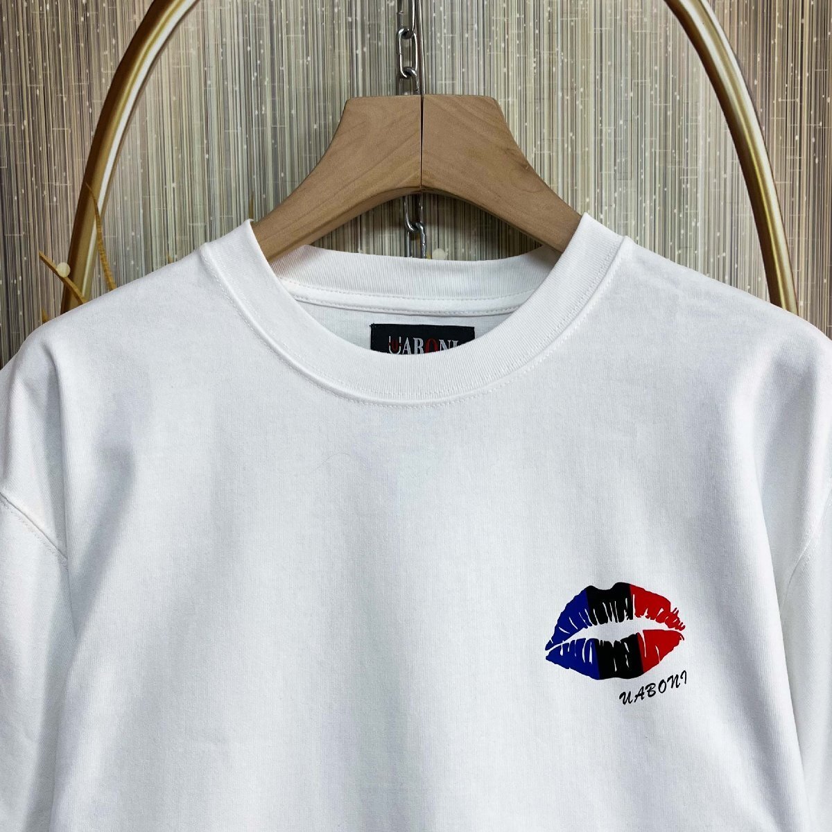 新作EU製&定価2万◆UABONI*Paris*半袖 Tシャツ*ユアボニ*パリ発◆エジプト綿100% 柔らかい キスマーク 丸首 シンプル カットソー 街着 L