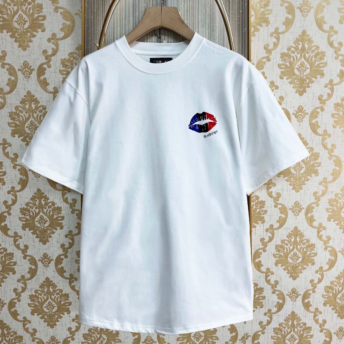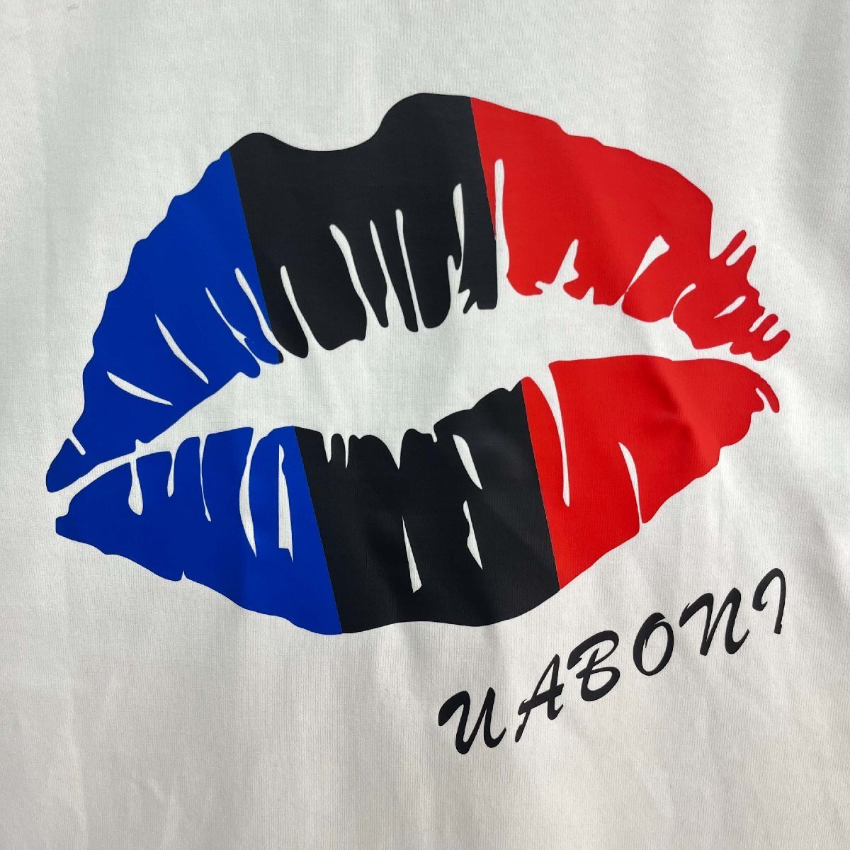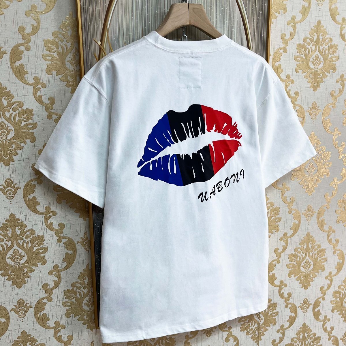 新作EU製&定価2万◆UABONI*Paris*半袖 Tシャツ*ユアボニ*パリ発◆エジプト綿100% 柔らかい キスマーク 丸首 シンプル カットソー 街着 L