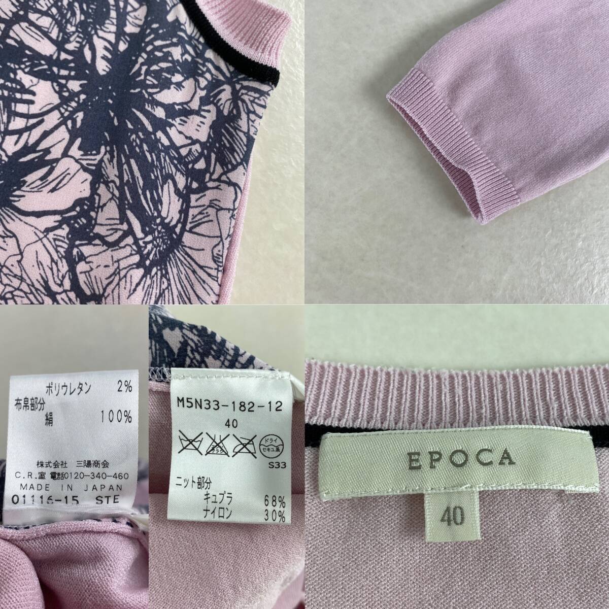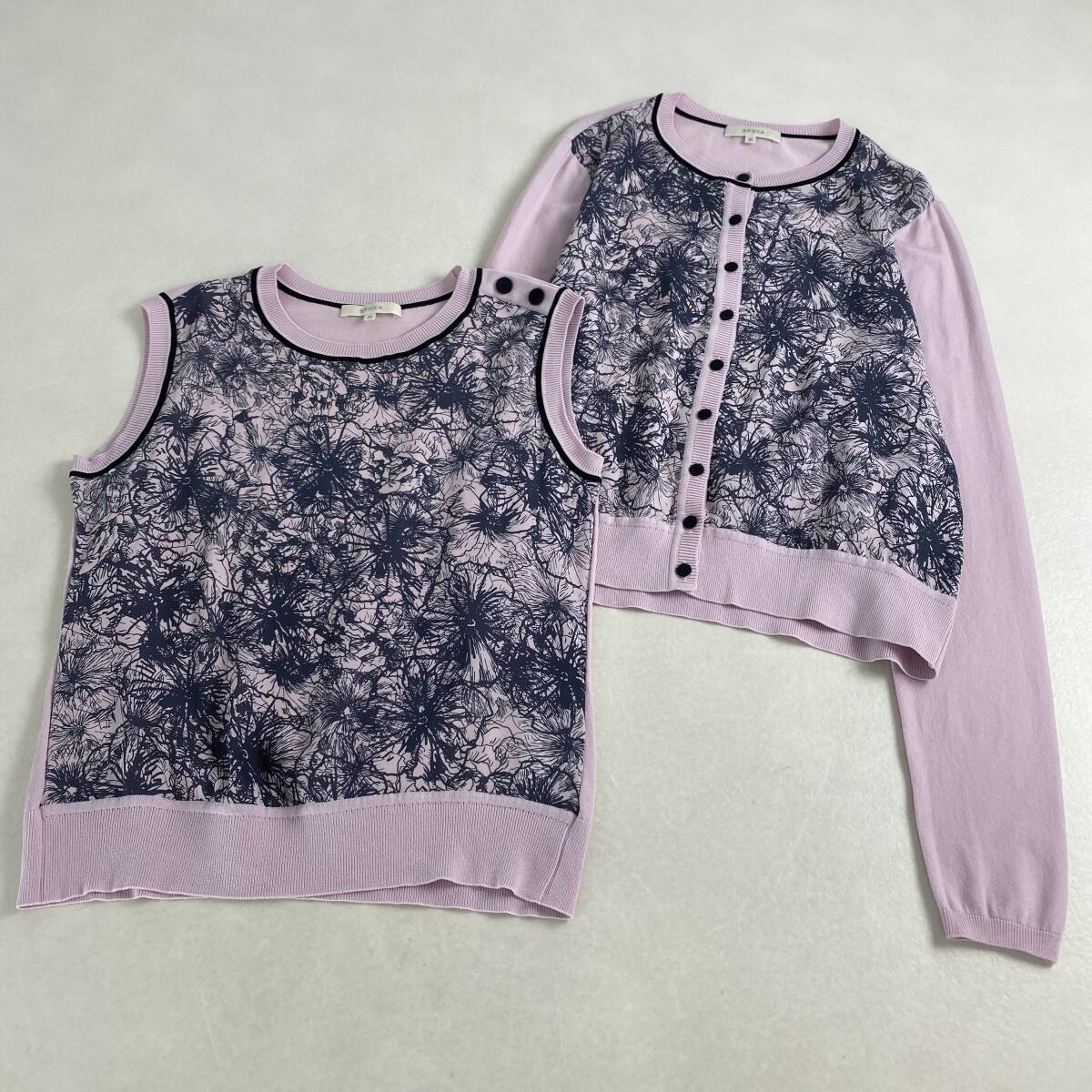 エポカ アンサンブル 花柄 カーディガン ニット EPOCA ピンク ネイビー M・L相当