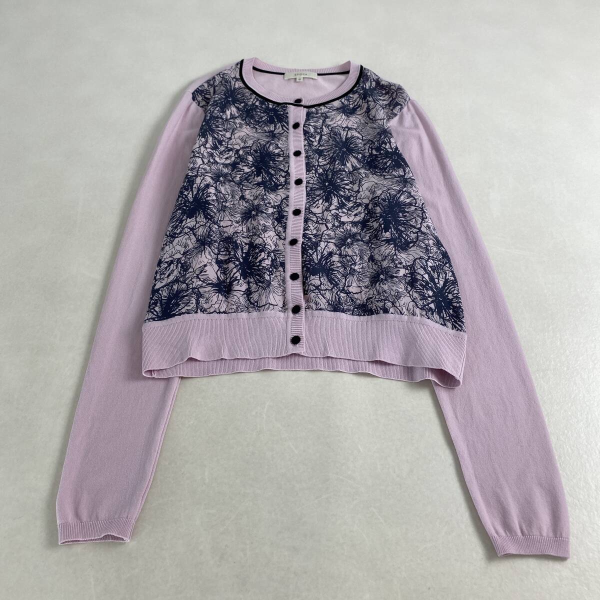 【ポイント】花柄 カーディガン ニット EPOCA ピンク ネイビー M・L相当