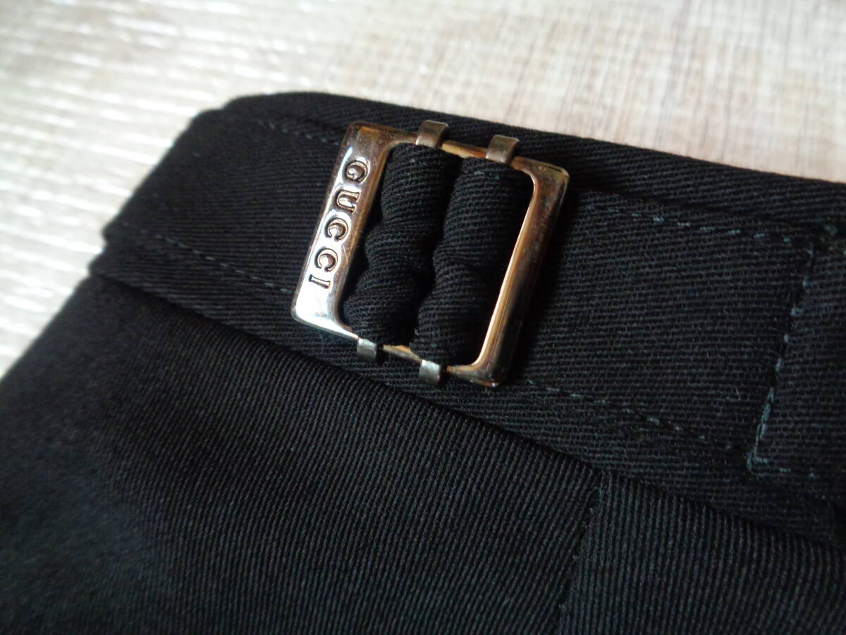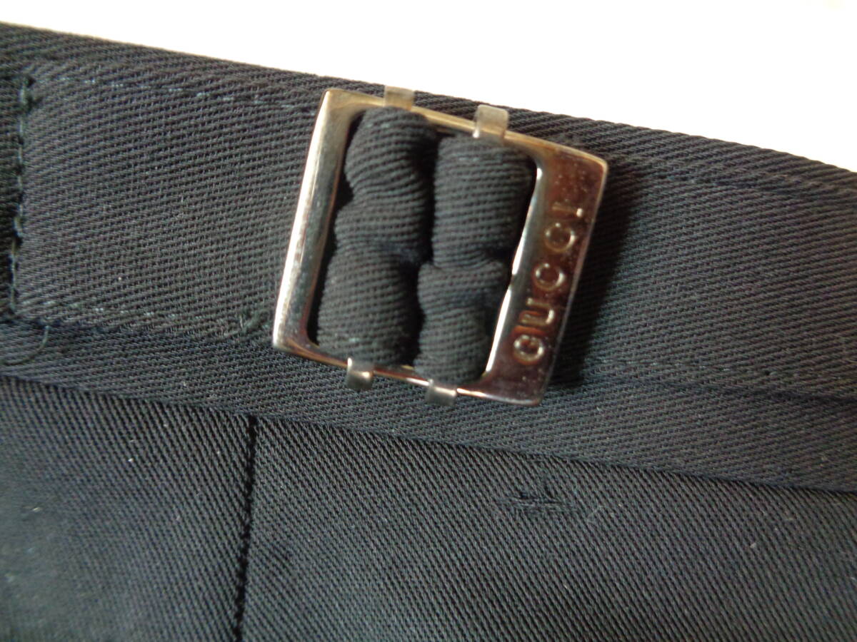 40-j43 グッチ スラックス ストラップ付 パンツ 厚手  黒色 46