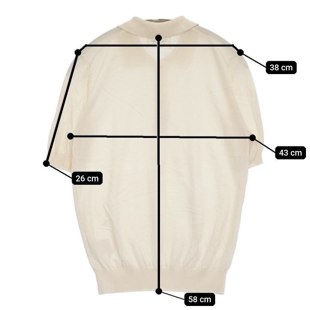 | 実寸サイズ | 肩幅:約38cm 着丈:約58cm 身幅:約43cm 袖丈:約26cm ※採寸画像がある商品はハンガーに吊るした状態での計測のため、平置きでの採寸とは差が生じる場合がございます。平置きでの実寸サイズをご希望の場合は、ご購入前に必ずご質問ください。 ※記載以外のサイズが合わないことを理由とした返品はできませんので、 記載部分以外で実寸サイズの気になる箇所があれば必ず購入前にご質問ください。 |