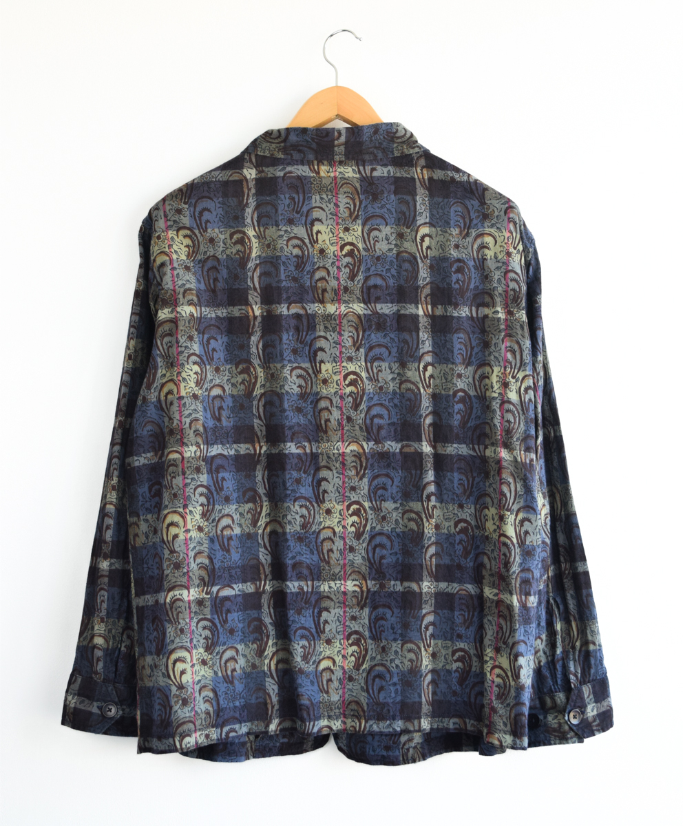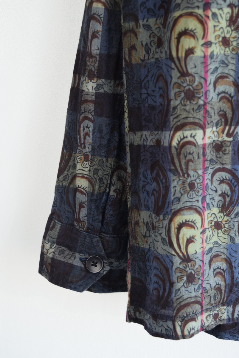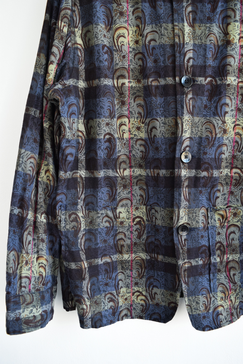 特徴: シンプルな構造によって、シャツに近い感覚でカジュアルなスタイリングが楽しめるジャケット。 個性的なプリントを大胆に使用した存在感のある一着。インドで生産が行われ、独特の味わい、深い表情と生地の風合いが魅力です。