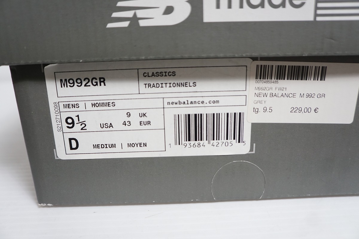 美品 正規 2021年製 NEW BALANCE ニューバランス M992GR USA製 スニーカー M992 MADE IN USA サイズ9 1/2 本物 815P▲